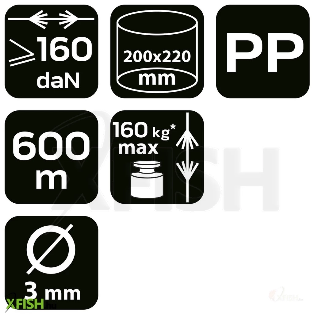 A NEO TOOLS fonott polipropilén kötél kiemelkedő választás mindazok számára, akik megbízható és sokoldalú kötélre vágynak. Ez a 3 mm átmérőjű és 600 méter hosszú zsinór különleges minőségű polipropilénből készült, amely a tartósság és megbízhatóság megtestesítője. A termék szálszilárdsága PN-EN ISO 2307 szabvány szerint 160 + / - 5%, ami garantálja, hogy ez a kötél bármilyen környezetben megállja a helyét.