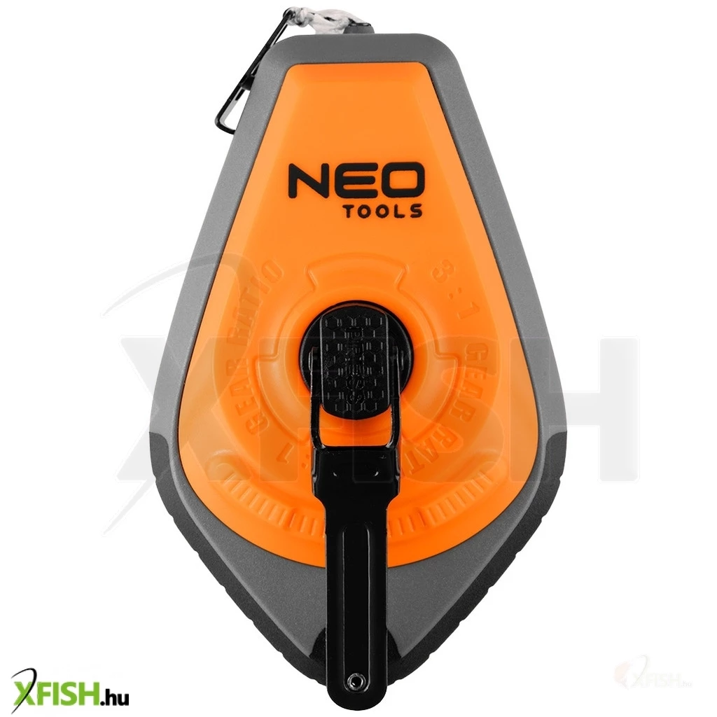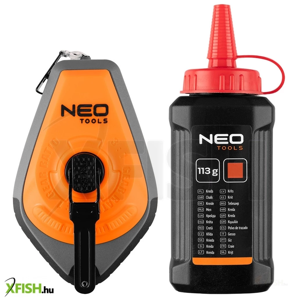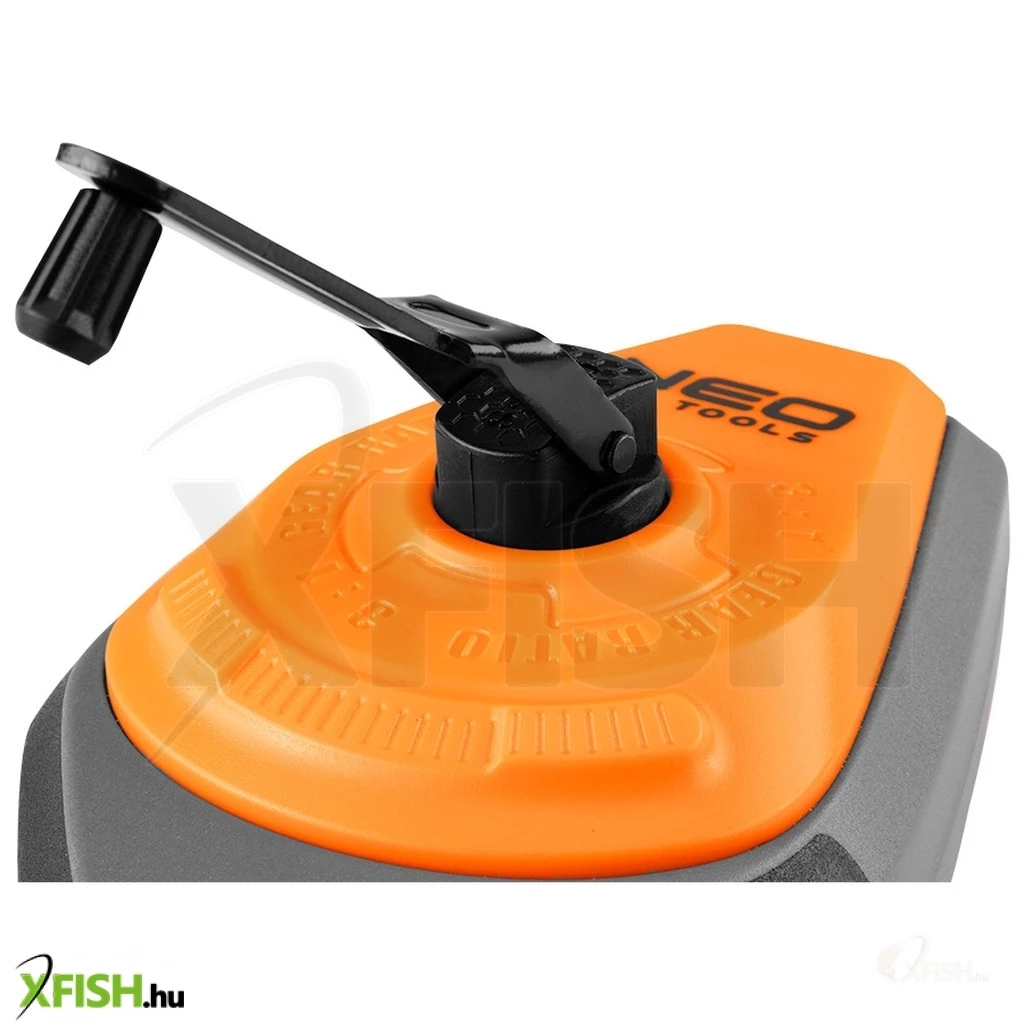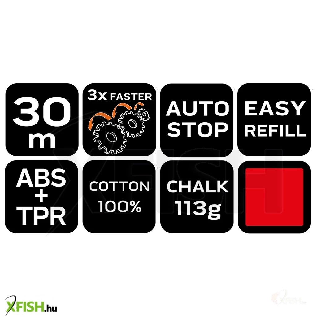 Neotools kicsapózsinór+festék, műanyag házas, 30m, 13-as gyorsítóáttétel a zsinór visszatekeréshez, piros porfesték