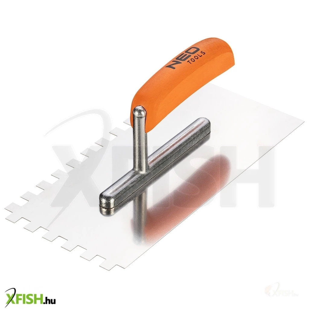 KategóriákKategóriákKerti szerszámok, eszközök Kőműves szerszám Neotools acél simító, fogazott, rozsdamentes, 270x128mm, 10x10x10mm, fa markolat