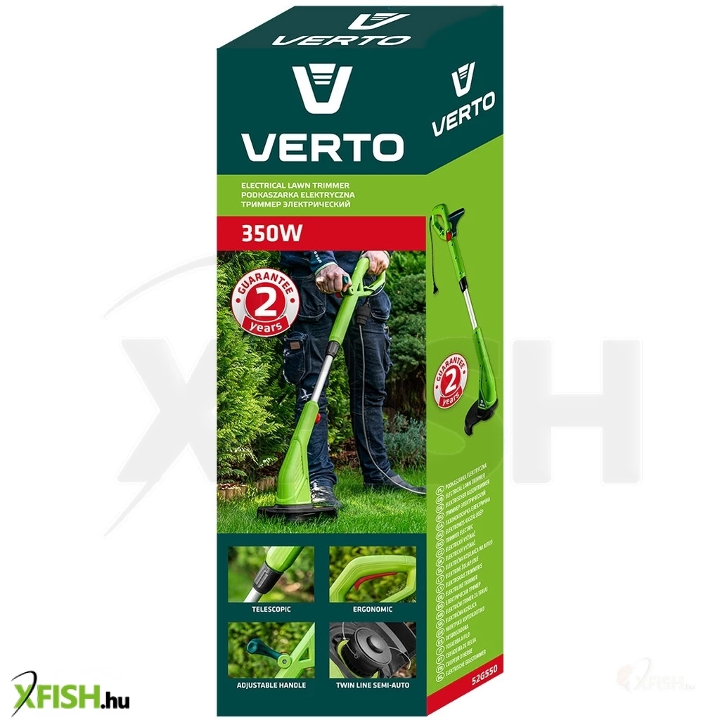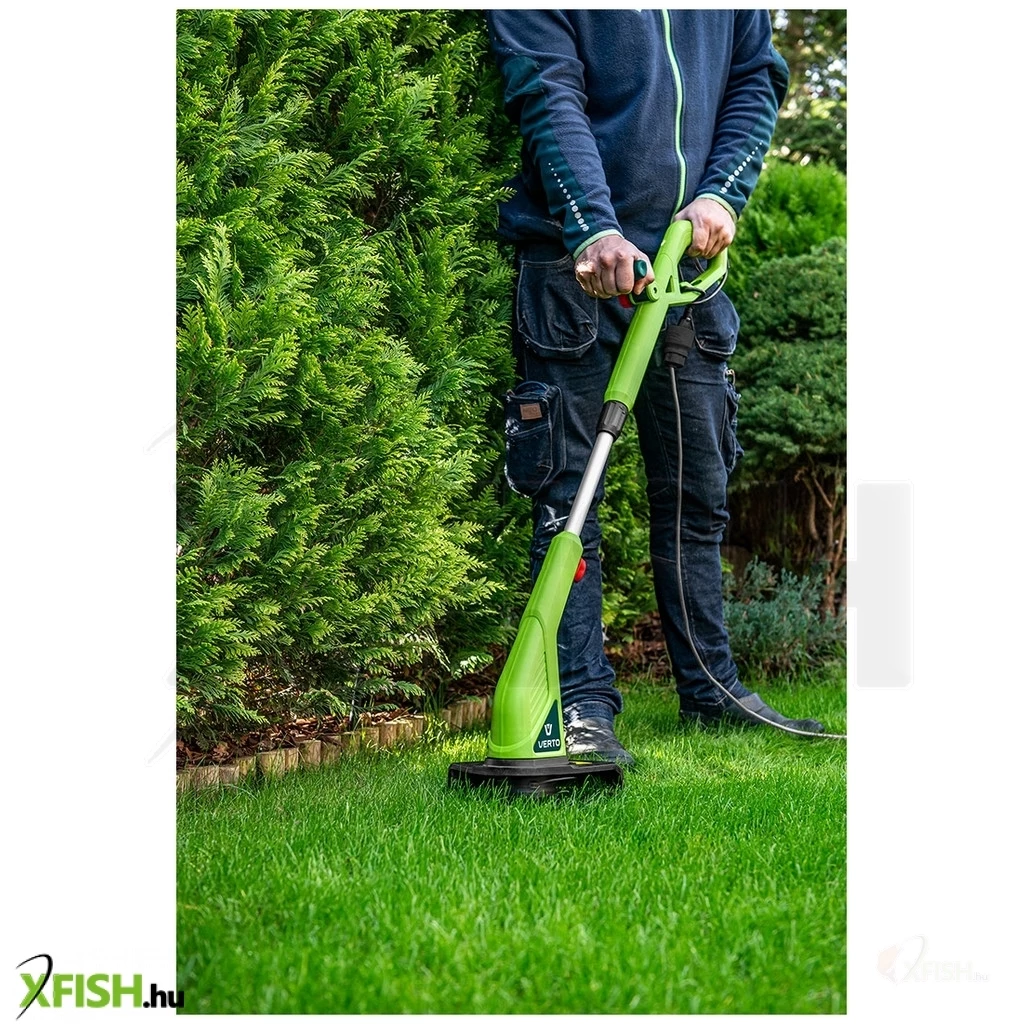 Elektromos fűszegélynyíró 350 W, 52G550, VERTO - ideális eszköz a házkörüli gyep nyírásánál és ápolásánál. Az elektromos szerszámot úgy tervezték, hogy nehezen hozzáférhető helyeken, pl. kerítések, virágágyások, bokrok, fák és járdaszegélyek mellett is lehessen vele dolgozni. A szegélynyíró könnyű és használata kényelmes. Köszönhető ez a kihúzható teleszkópos nyélnek, amellyel a szerszám a felhasználó testmagasságához igazítható. A kiegészítő markolat is állítható.