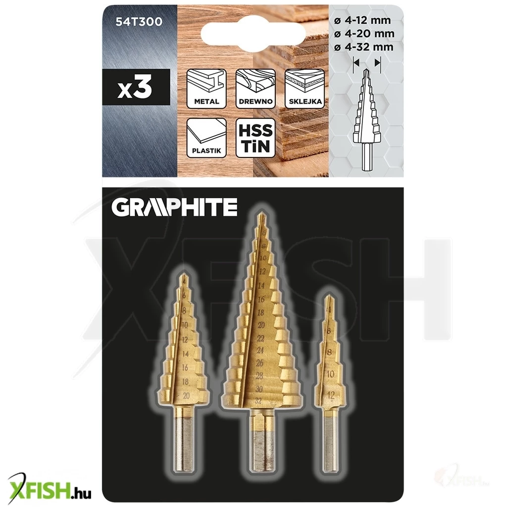 Neotools lépcsős fúró készlet, 3db-os, hss-titán, 4-12mm, 4-20mm, 4-32mm