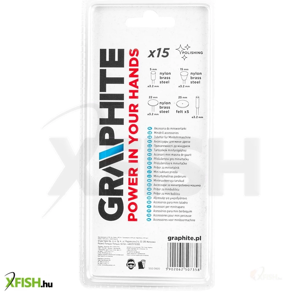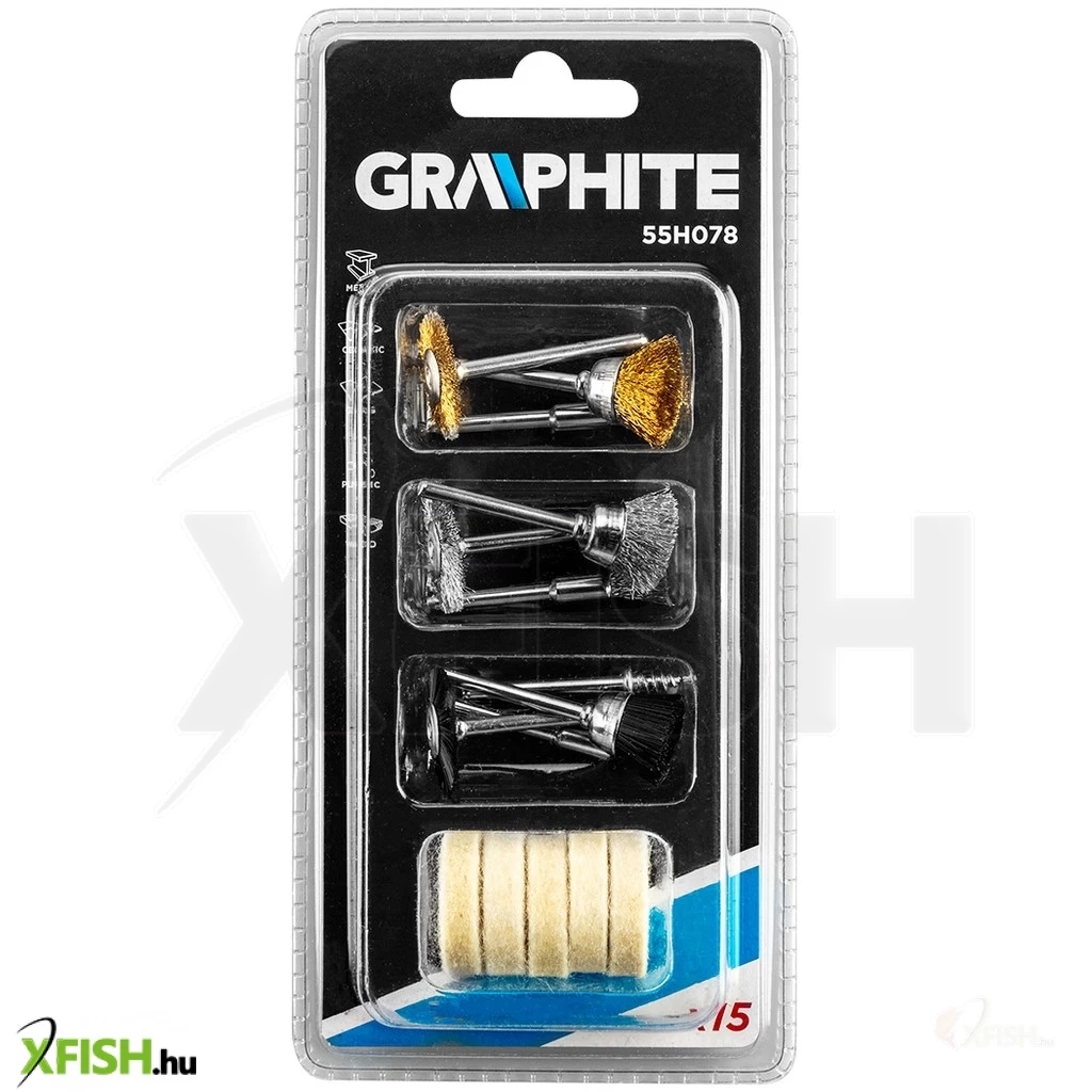 Kefe és polírozó készlet mini fúró- és csiszológéphez, 15 db-os, 55H078, GRAPHITE