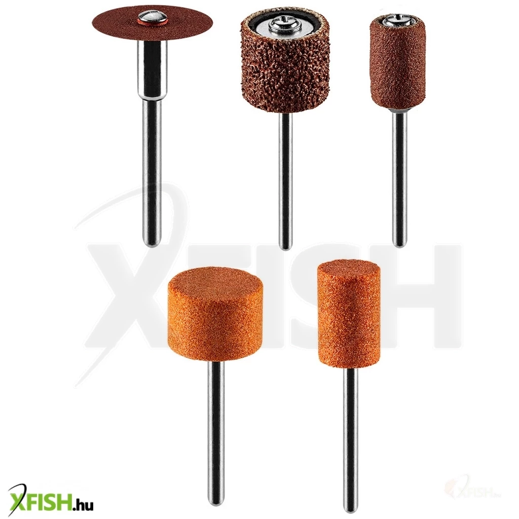A készlet tartalmaz: csiszolóköveket (1 db keskeny henger, 2 db széles henger, 1 db kúp), 36 db csiszolókorongot, 8 db csiszolószalagot, 2 db szalaghengert, 2 db szárat
