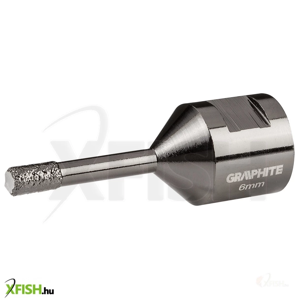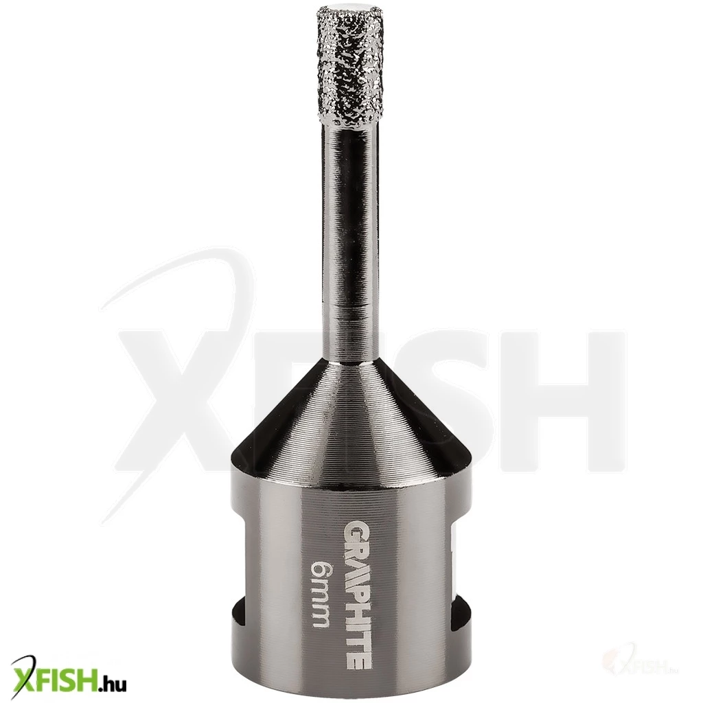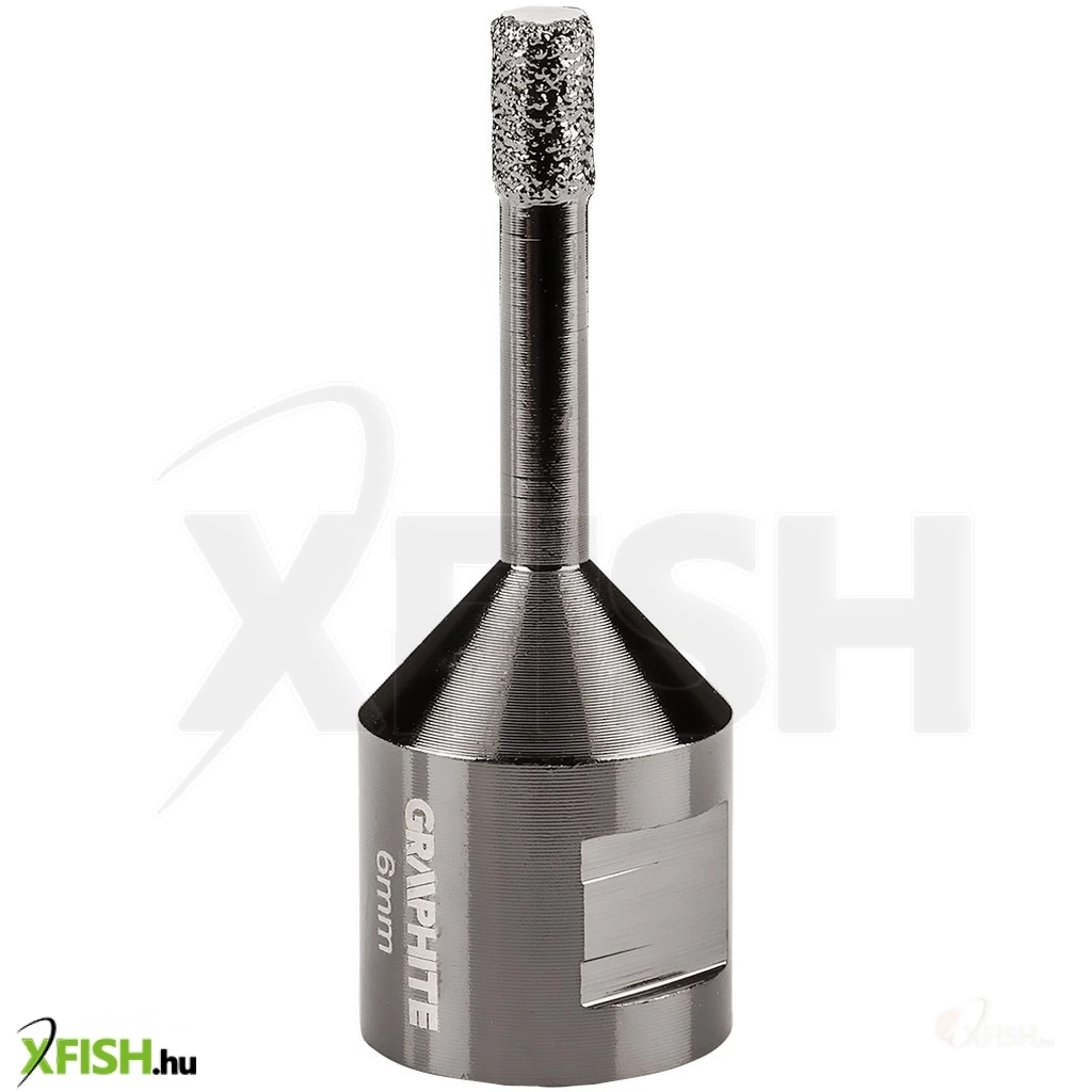 Körkivágó, gyémántos 6 mm, 55H300, GRAPHITE - a gyémánt csiszoló erejét használja fel lyukak fúrására kemény anyagokban. Vákuumos keményforrasztási technológiával készül, ami nagy fúrási sebességet és hosszabb élettartamot biztosít. Az oldalán lévő nyílások garantálják az optimális hűtést és a keletkezett por működés közbeni elvezetését, továbbá a hűtés hatékonyságának növelése érdekében a körkivágót paraffinnal töltik meg. Sarokcsiszolóra, M14-es menetre szerelhető és száraz vágásra tervezték.