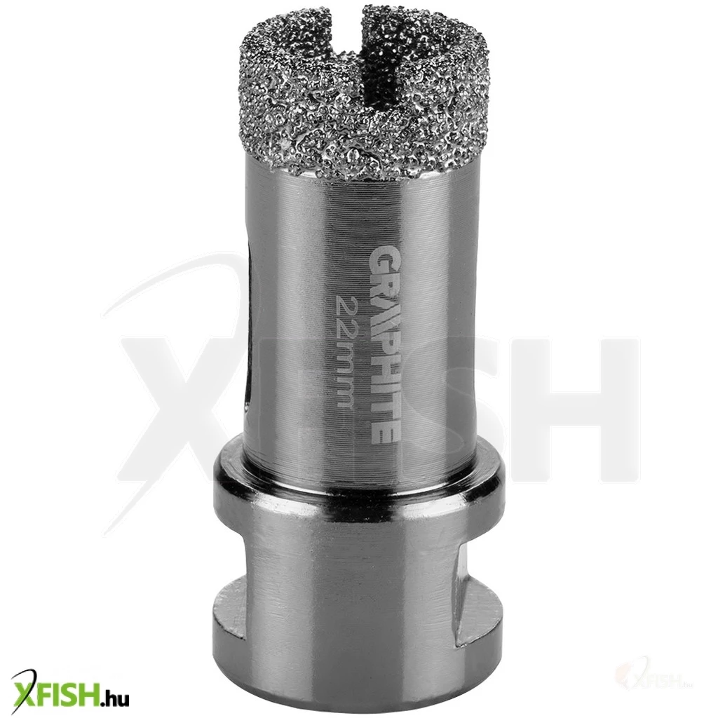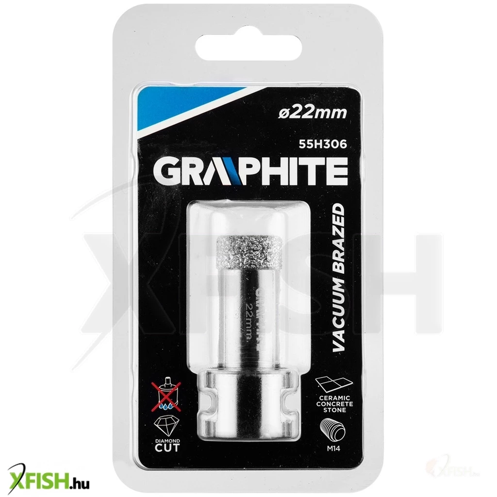 Körkivágó, gyémántos 22 mm, 55H306, GRAPHITE - a gyémánt csiszoló erejét használja fel tökéletesen egyforma lyukak fúrására kemény anyagokban, pici területen. Vákuumos keményforrasztási technológiával készül, ami nagy fúrási sebességet és hosszabb élettartamot biztosít. Az oldalán lévő nyílások garantálják az optimális hűtést és a keletkezett por működés közbeni elvezetését. Sarokcsiszolóra, M14-es menetre szerelhető és száraz vágásra tervezték.