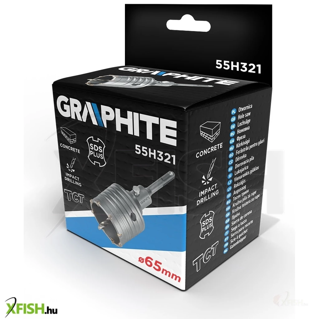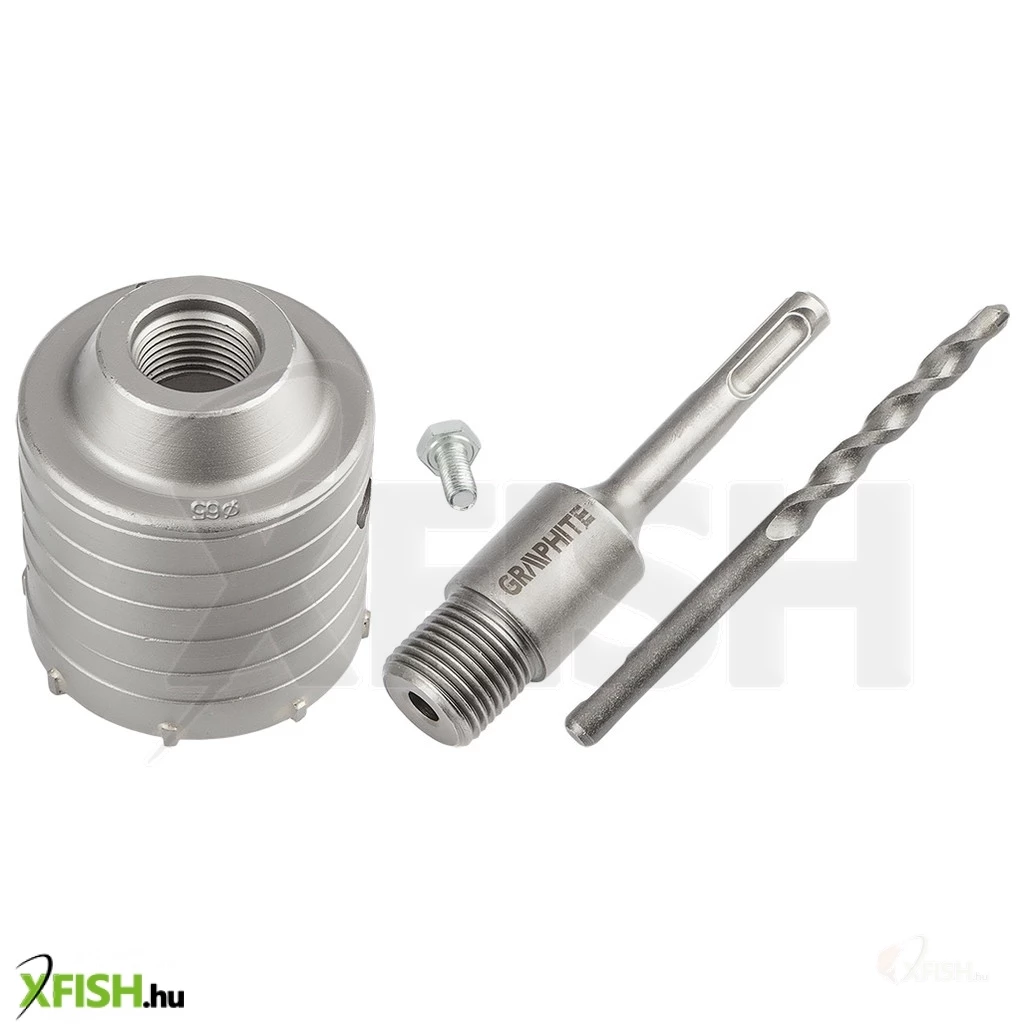 A65 mm-es koronafúró körkivágó, SDS+ adapterrel és központfúróval 55H321 GRAPHITE megbízható szerszám, amely számos alkalmazásban bizonyítja értékét. A volfrámkarbid pengékkel felszerelt szerszám ideális beton és tégla lyukak fúrásához. Sokoldalú felhasználási lehetőségei közé tartozik az is, hogy az ezekből az anyagokból készült falakba csatlakozó dobozok számára furatokat készítsünk.
