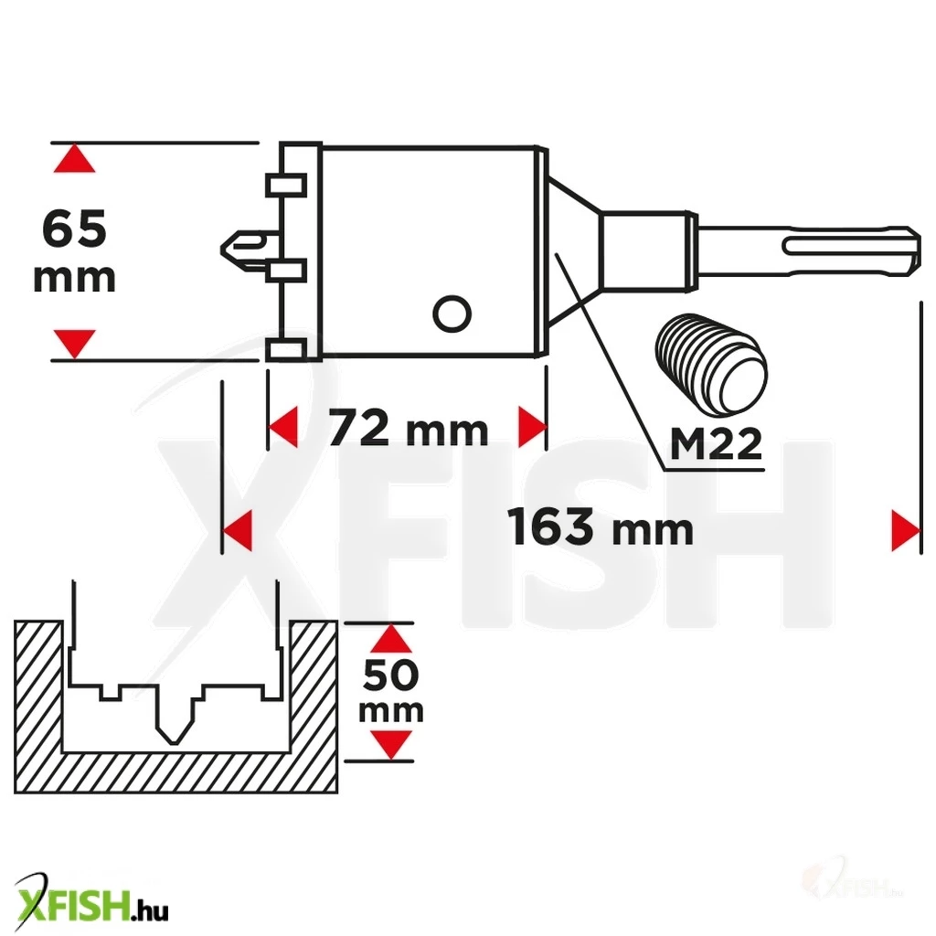 Ezen kívül a körkivágó SDS+ adapterrel és előfúróval van felszerelve, ami megkönnyíti és felgyorsítja a fúrási folyamatot. A készlet teljes hossza 163 mm, így praktikus és kényelmes eszköz az építkezők, barkácsolók és villanyszerelők számára egyaránt. Ez egy nélkülözhetetlen eszköz, amely segít a különböző anyagokban pontos furatok készítésében.