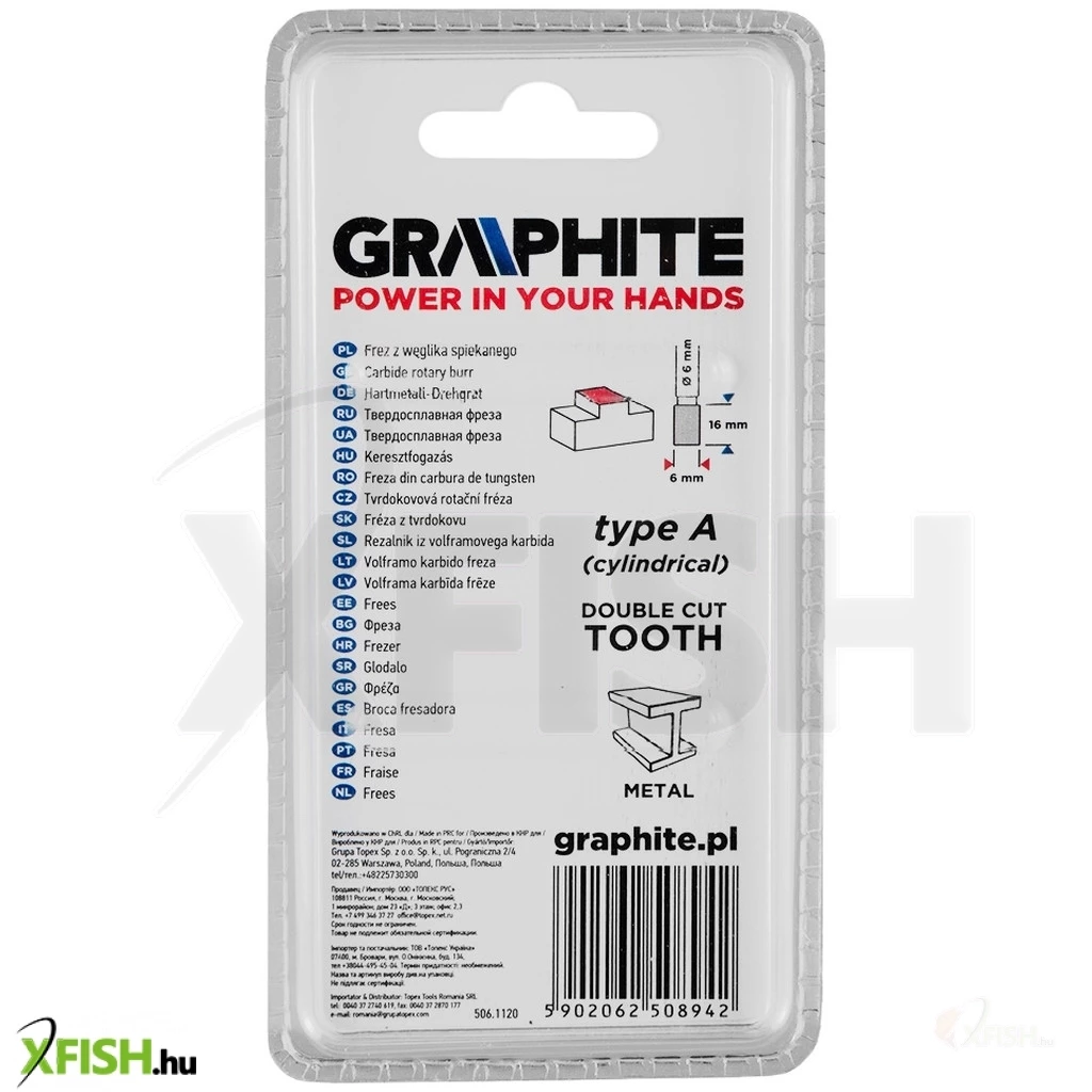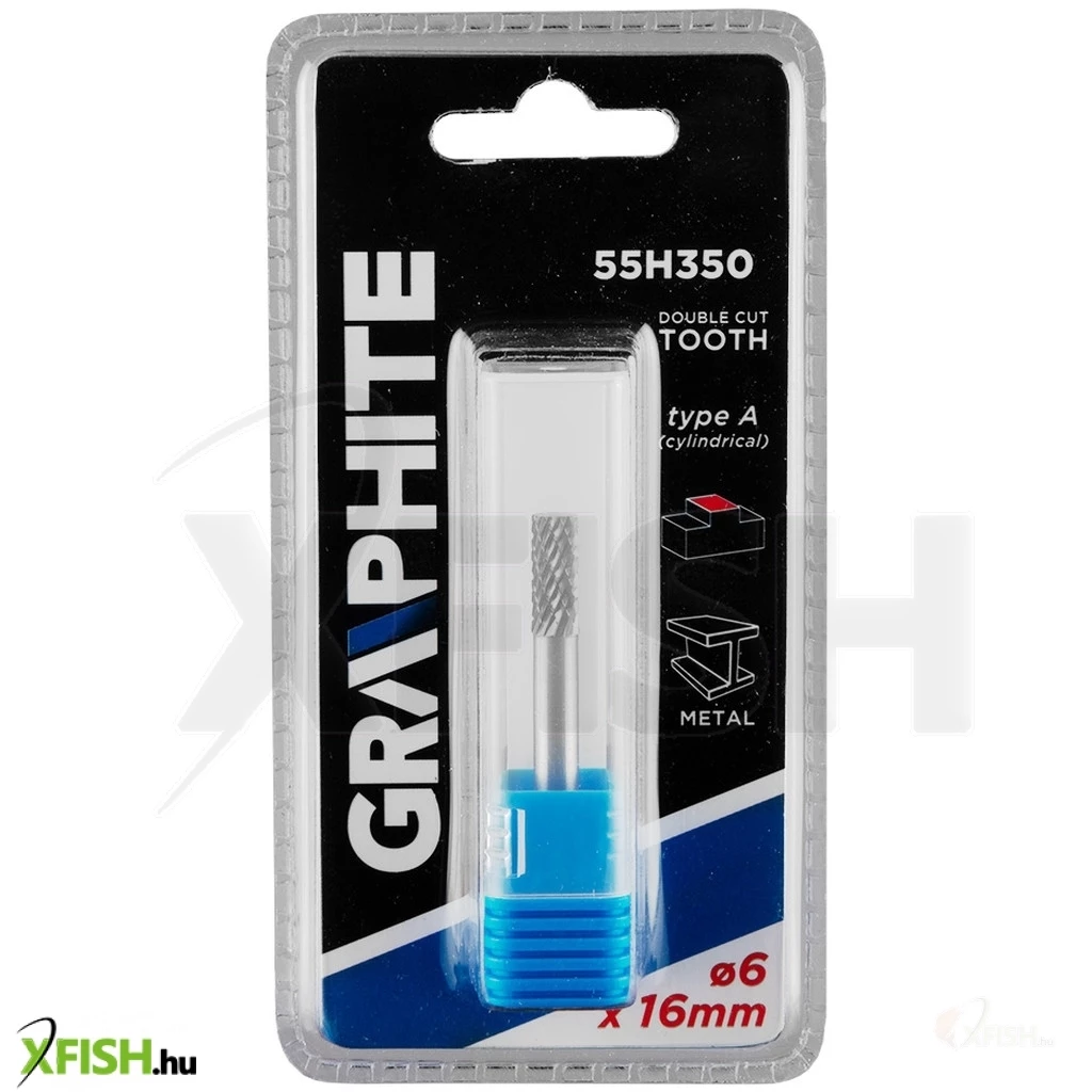 Keményfém marófej, A típusú (hengeres), 6 x 16 mm, 55H350, GRAPHITE - kiváló minőségű, a megmunkálandó felület marására vagy vágására szolgáló szerszám. Fém, alumínium és műanyag megmunkálására tervezték. Egyenes csiszolókkal használható (ne használja fúróval).