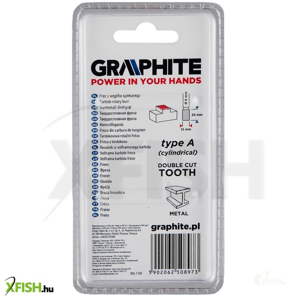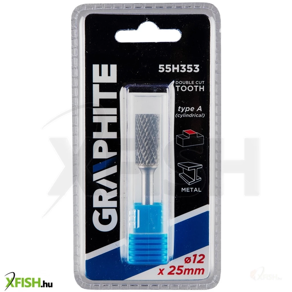 Keményfém marófej, A típusú (hengeres), 12 x 25 mm, 55H353, GRAPHITE - kiváló minőségű, a megmunkálandó felület marására vagy vágására szolgáló szerszám. Fém, alumínium és műanyag megmunkálására tervezték. Egyenes csiszolókkal használható (ne használja fúróval).