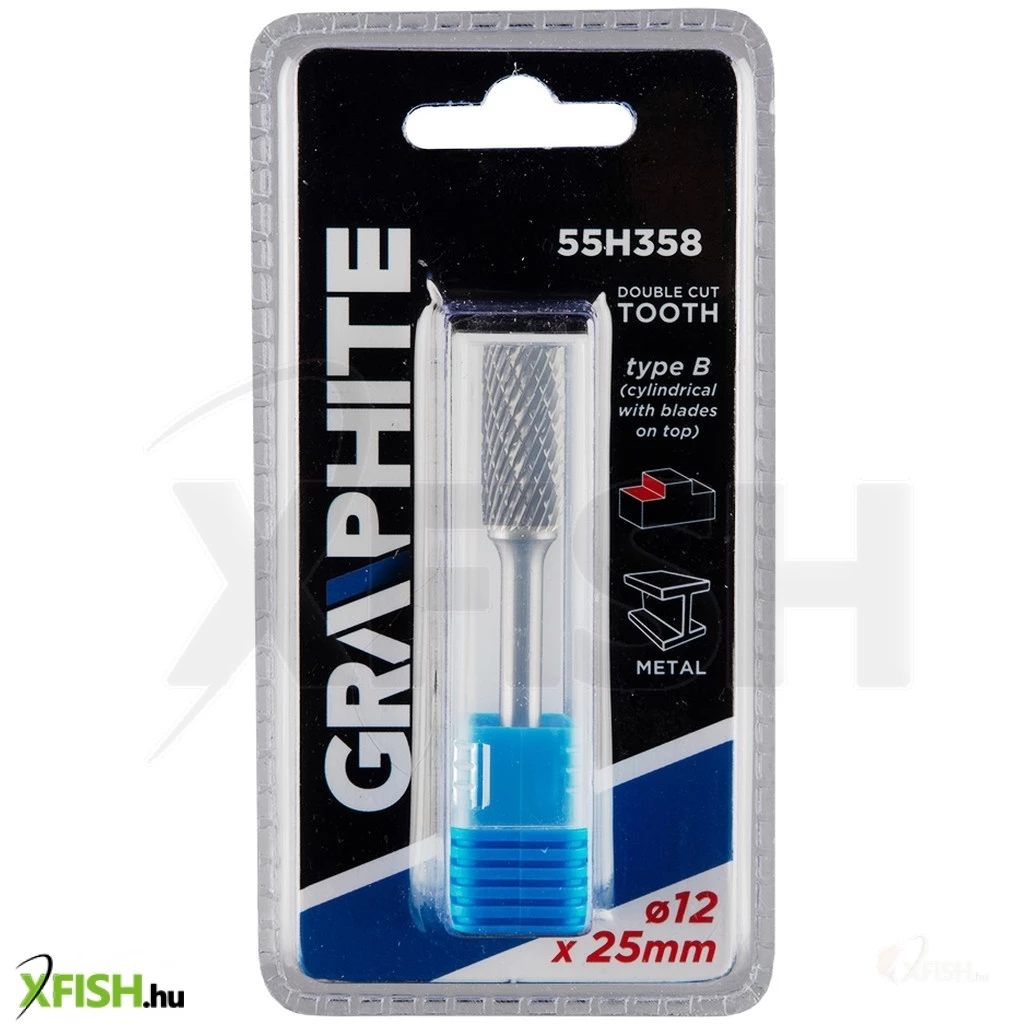 Keményfém marófej, B típusú (hengeres, frontélezéssel), 12 x 25 mm, 55H358, GRAPHITE - kiváló minőségű, a megmunkálandó felület marására vagy vágására szolgáló szerszám. Fém, alumínium és műanyag megmunkálására tervezték. Egyenes csiszolókkal használható (ne használja fúróval).