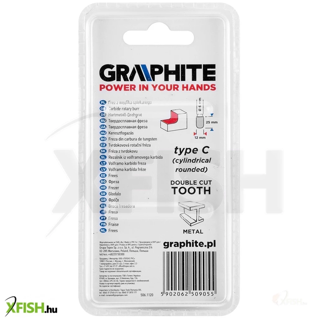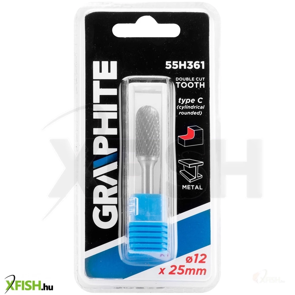 Keményfém marófej, C típusú (hengeres, élletöréssel), 12 x 25 mm, 55H361, GRAPHITE - kiváló minőségű, a megmunkálandó felület marására vagy vágására szolgáló szerszám. Fém, alumínium és műanyag megmunkálására tervezték. Egyenes csiszolókkal használható (ne használja fúróval).