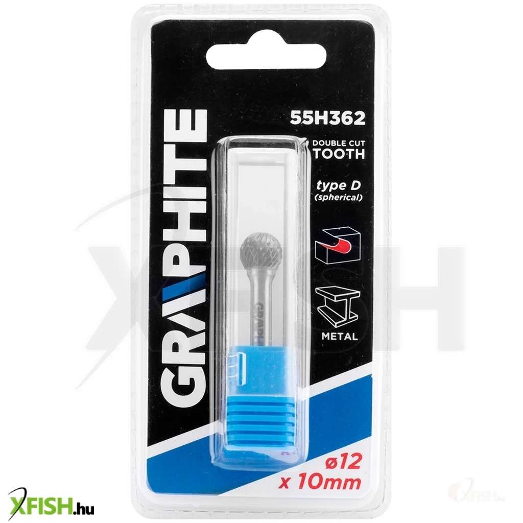 Keményfém marófej, D típusú (gömb), 12 x 10 mm, 55H32, GRAPHITE - kiváló minőségű, a megmunkálandó felület marására vagy vágására szolgáló szerszám. Fém, alumínium és műanyag megmunkálására tervezték. Egyenes csiszolókkal használható (ne használja fúróval).