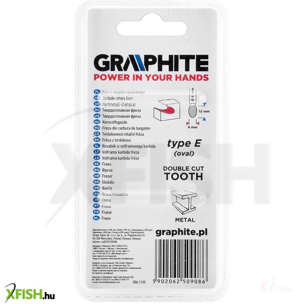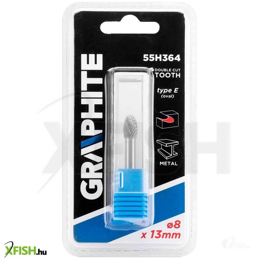 Keményfém marófej, E típusú (csepp, ovális), 8 x 13 mm, 55H364, GRAPHITE - kiváló minőségű, a megmunkálandó felület marására vagy vágására szolgáló szerszám. Fém, alumínium és műanyag megmunkálására tervezték. Egyenes csiszolókkal használható (ne használja fúróval).