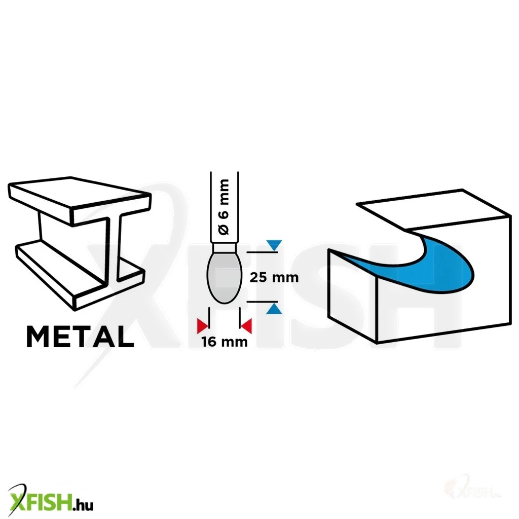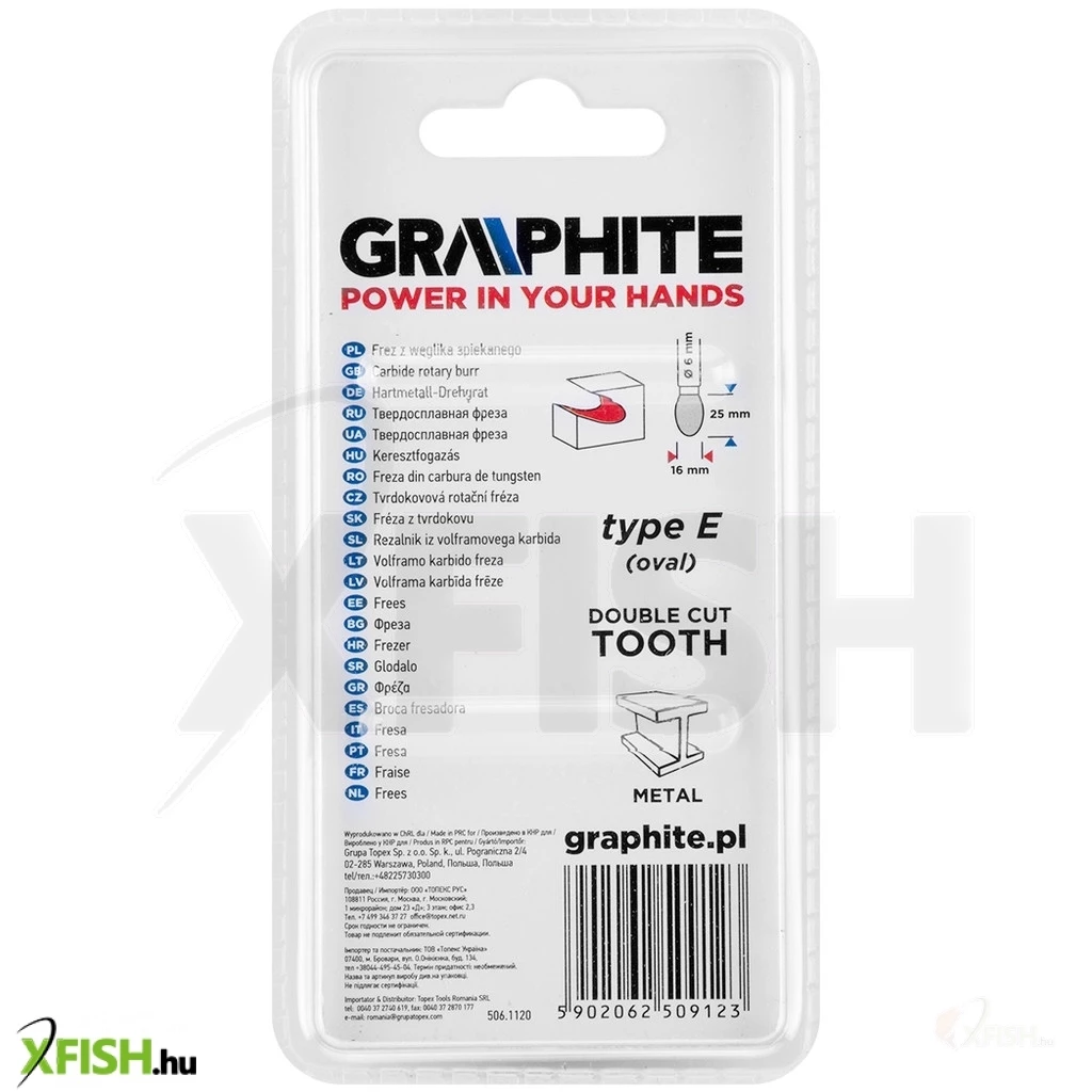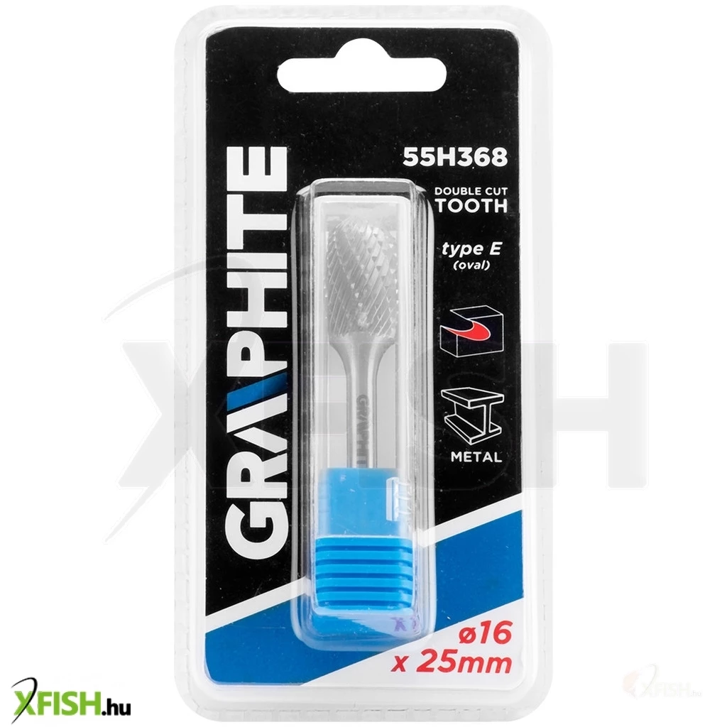 Keményfém marófej, E típusú (csepp, ovális), 16 x 25 mm, 55H368, GRAPHITE - kiváló minőségű, a megmunkálandó felület marására vagy vágására szolgáló szerszám. Fém, alumínium és műanyag megmunkálására tervezték. Egyenes csiszolókkal használható (ne használja fúróval).