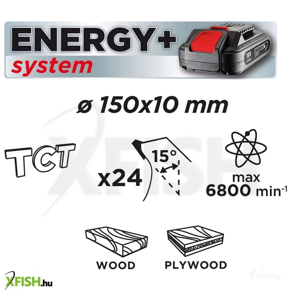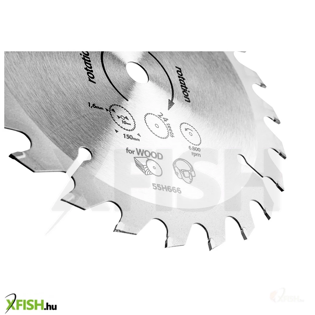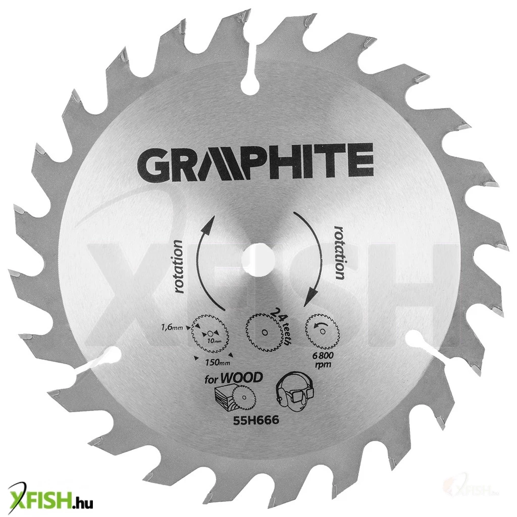 Keményfém lappkákkal ellátott fogak, 150 x 10mm, 1.6 mm vágásszélesség, 24 fog. 58G008-as cikkszámú GRAPHITE ENERGY+ körfűrészhez javasolt.