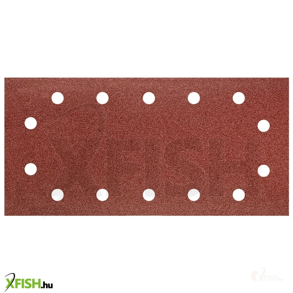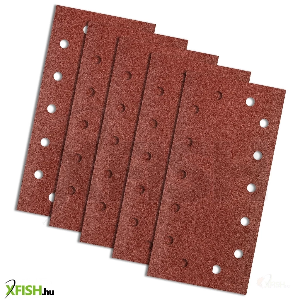 Csiszolópapír tépőzáras 115 x 230 mm, K80, lyukakkal, elektrokorund szemcse, E típusú papír, félig nyílt szórás, 5 db.