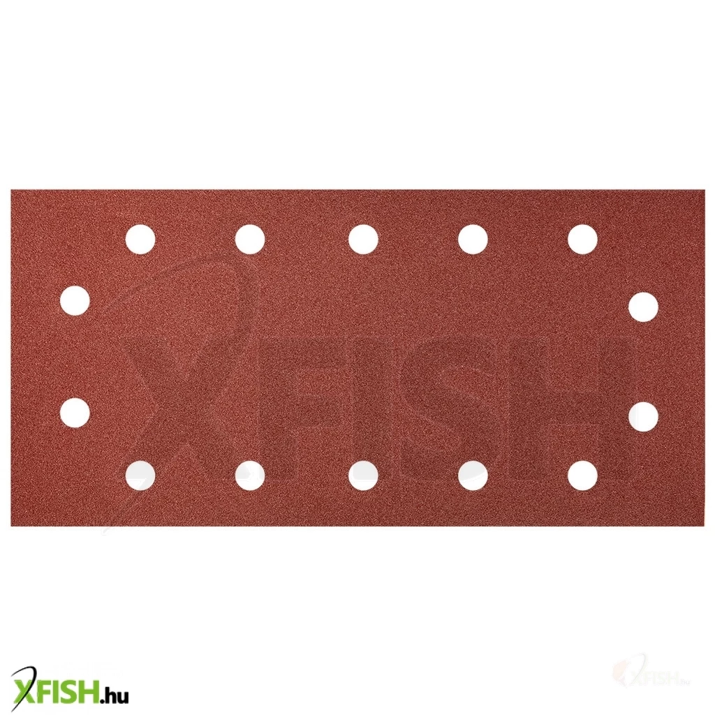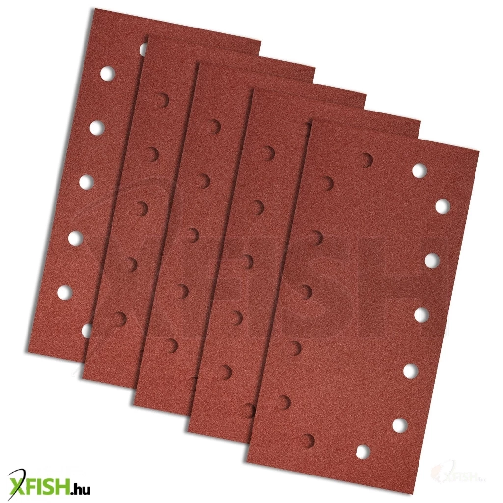 Csiszolópapír tépőzáras 115 x 230 mm, K240, lyukakkal, elektrokorund szemcse, E típusú papír, félig nyílt szórás, 5 db.