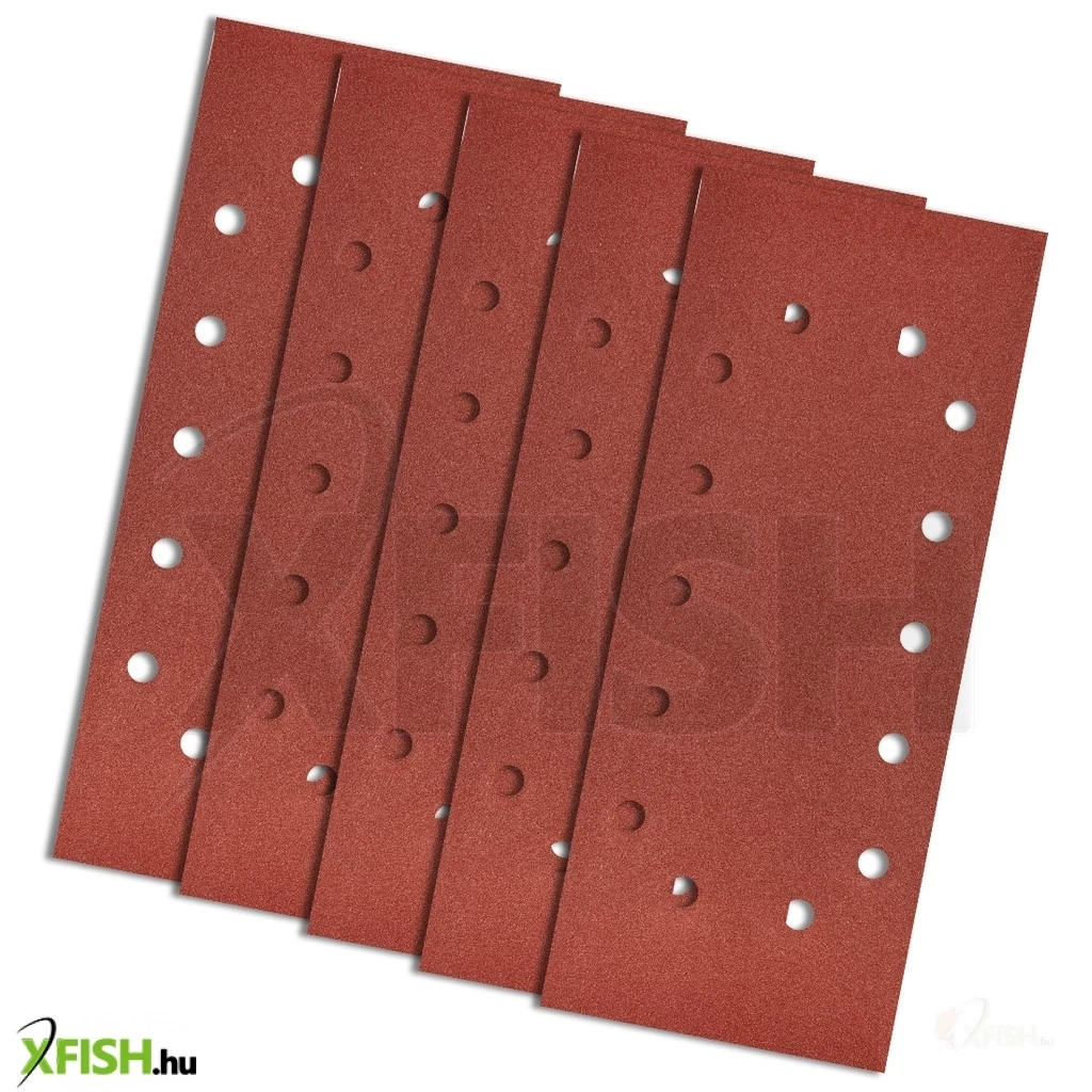 Csiszolópapír 115 x 280 mm, K240, lyukakkal, elektrokorund szemcse, E típusú papír, félig nyílt szórás, 5 db.