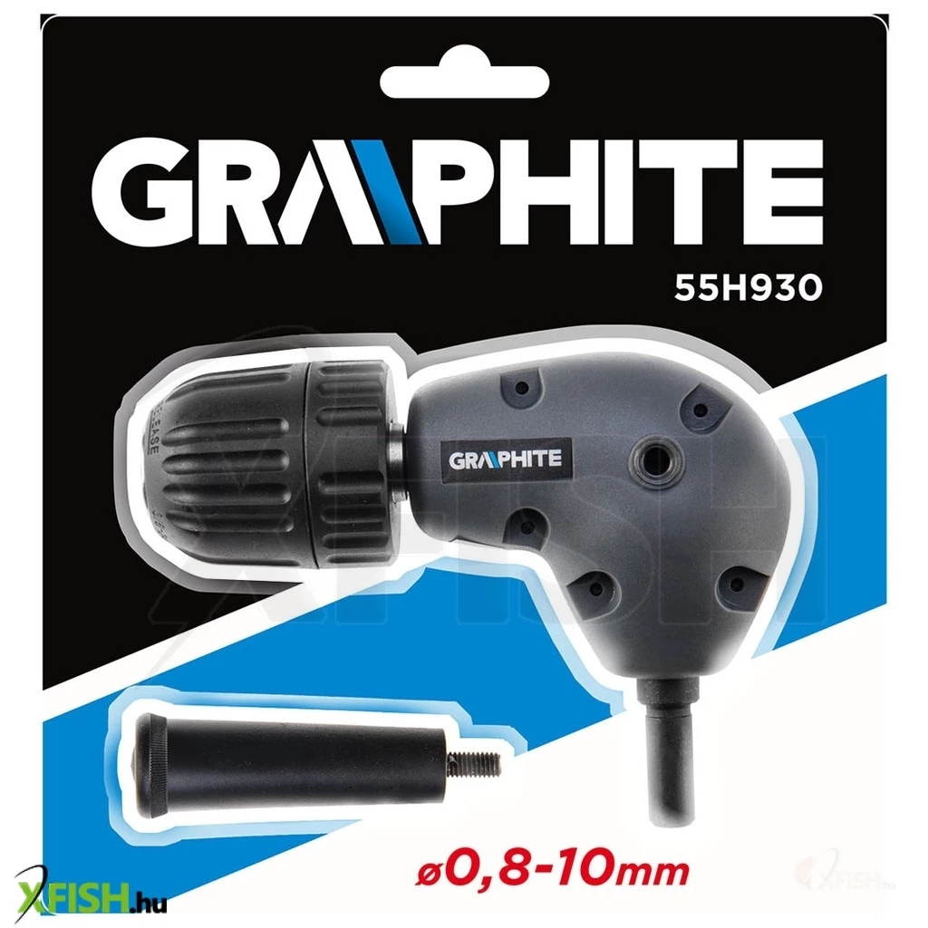 Derékszög fúróadapter, 90°-os, befogási tartomány 0,8-10 mm, max. fordulatszám 1500 percOO, tömeg 0,25 kg, jobb és bal forgásirány, méretek: (HxM) 125 x mm, blister pack csomagolásban