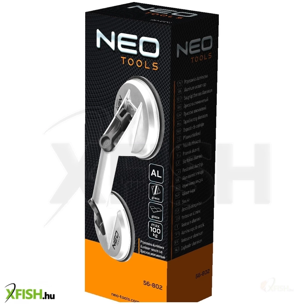 Neotools vákumos táblaemelő, üveghez, csempéhez, lakkozott felületekhez, alumínium, kettes, 100kg