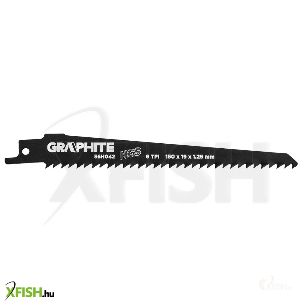 Orrfűrészlap, HCS, 150 x 19 x 1,25 mm, 6TPI, 2 db-os készlet 56H00042, GRAPHITE - faanyag, rétegelt lemez és MDF-lapok vágására alkalmas. Felújítási, építési és bontási munkákban, valamint az otthoni ezermesterkedésben lehet hasznos. Gyors és precíz egyenes- és görbevonalú vágás lehetősége, a következő vastagsági tartományokban: faanyag 6-100 mm, rétegelt lemez max. 75 mm, MDF-lapoknál 6-60 mm és PVC-nél 6-100 mm. A fűrészlap használata többszörösen alacsonyabb porkibocsátással jár, mint amilyen a hagyományos, például gyémánt- vagy korundtárcsával történő vágás során keletkezik. Lehetővé teszi az élközeli és nehezen hozzáférhető helyen történő vágást is.