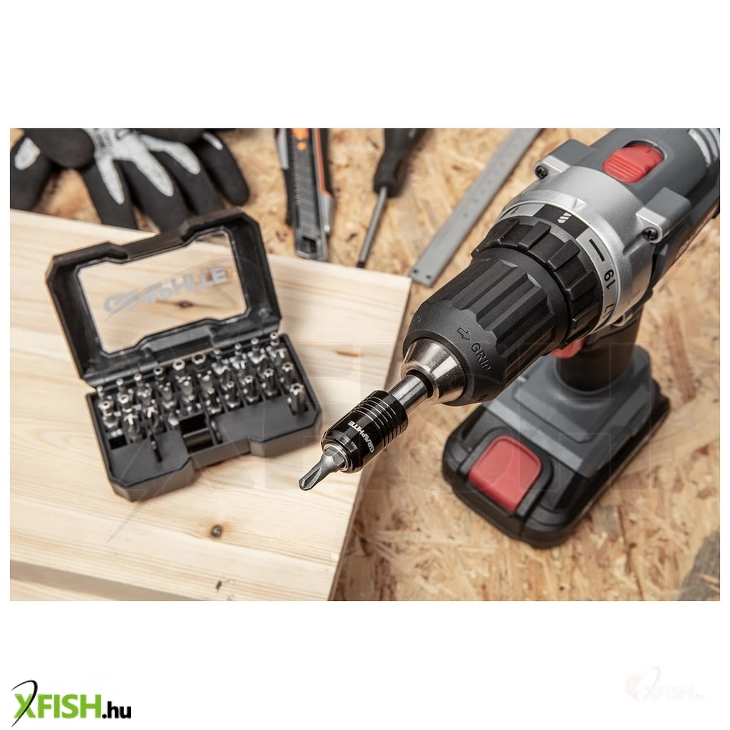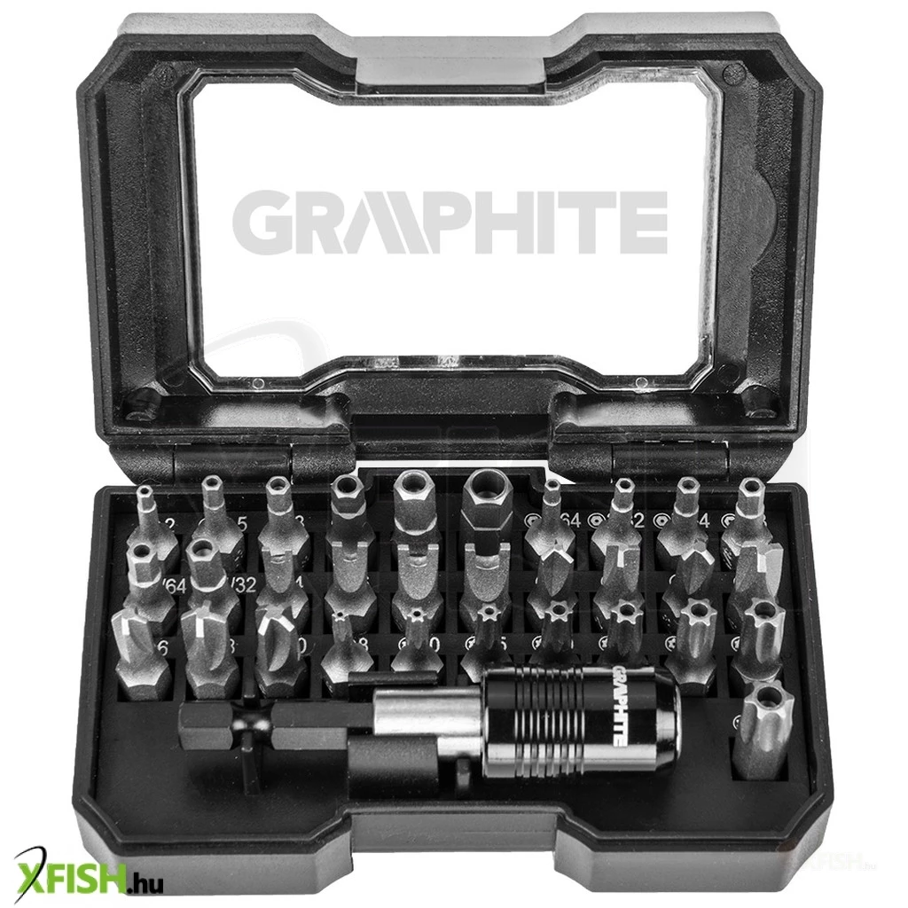 Szervizes bit készlet, 32 db 56H618 GRAFIT, praktikus szerszámkészlet a szervizmunkákhoz. Alkalmas autóipari alkalmazásokhoz, valamint háztartási berendezések és rádió, TV készülékek javításához. A készlet 31 darab, egyenként 25 mm hosszúságú bitből áll. Tartalmaz egy praktikus gyorskioldó hosszabbító szárat is biztonsági zárral (65 mm). A bitek 1/4" HEX menettel kerülnek rögzítésre. A tartós S2 acélból készült alkatrészek hosszú éveken át szolgálnak, és hatékonyabbá teszik a munkát.