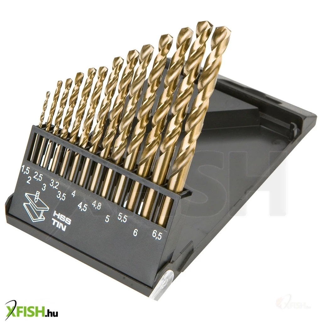 HSS-TiN fémfúrószár 1,5-6,5 mm, 13 dbOos készlet, méretek: 1,5 mm, 2,0 mm, 2,5 mm, 3,0 mm, 3,2 mm, 3,5 mm, 4,0 mm, 4,2 mm, 4,8 mm, 5,0 mm, 5,5 mm, 6,0 mm, 6,5 mm