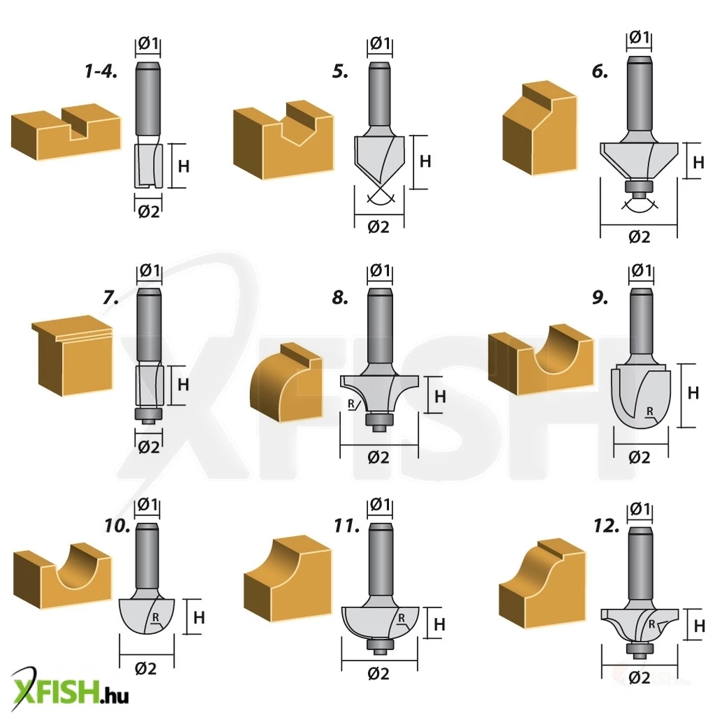 KategóriákKategóriákBarkácsolás, építkezés Fűrészek és gyalugépek Neotools felsőmaró késkészlet 12db, 8mm