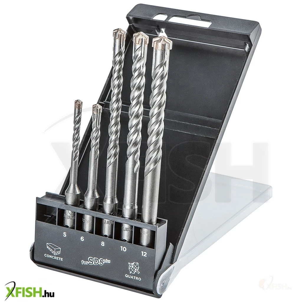 SDS PLUS betonfúrószár, 4 élű, 5 db-os készlet: 5 és 6 mm x 110 mm, valamint 8, 10 és 12 mm x 160 mm