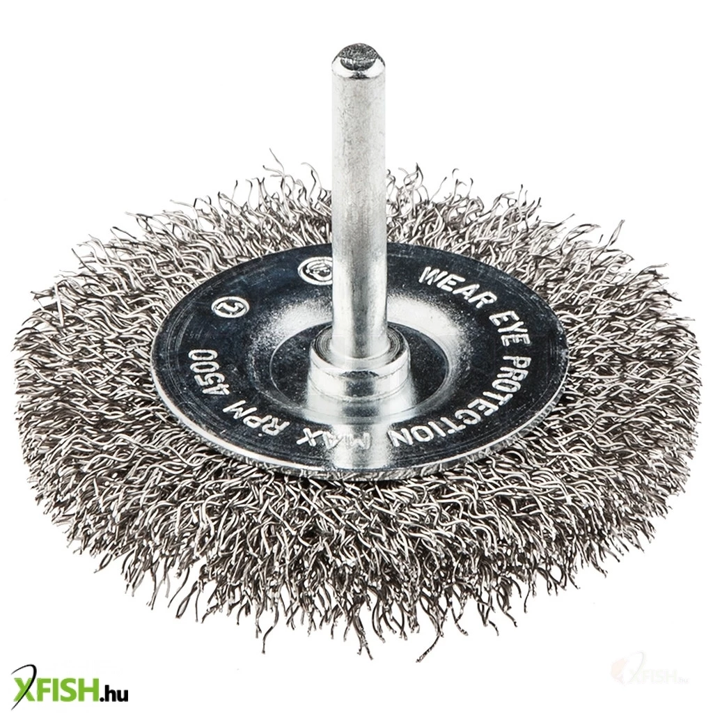 Drótkorong, szárral, INOX, hullámos drót, 50mm átmérő