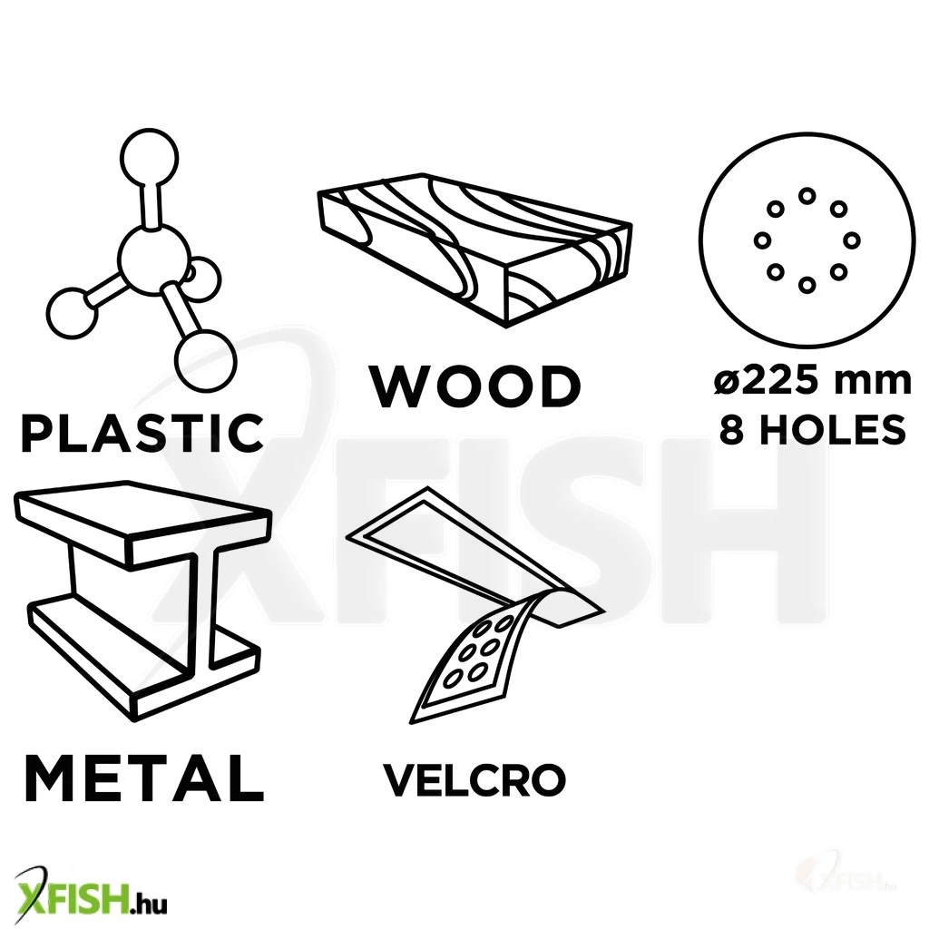 Csiszolópapír korong 225 mm, 5 db-os klt., tépőzáras, hosszúszárú csiszológéphez