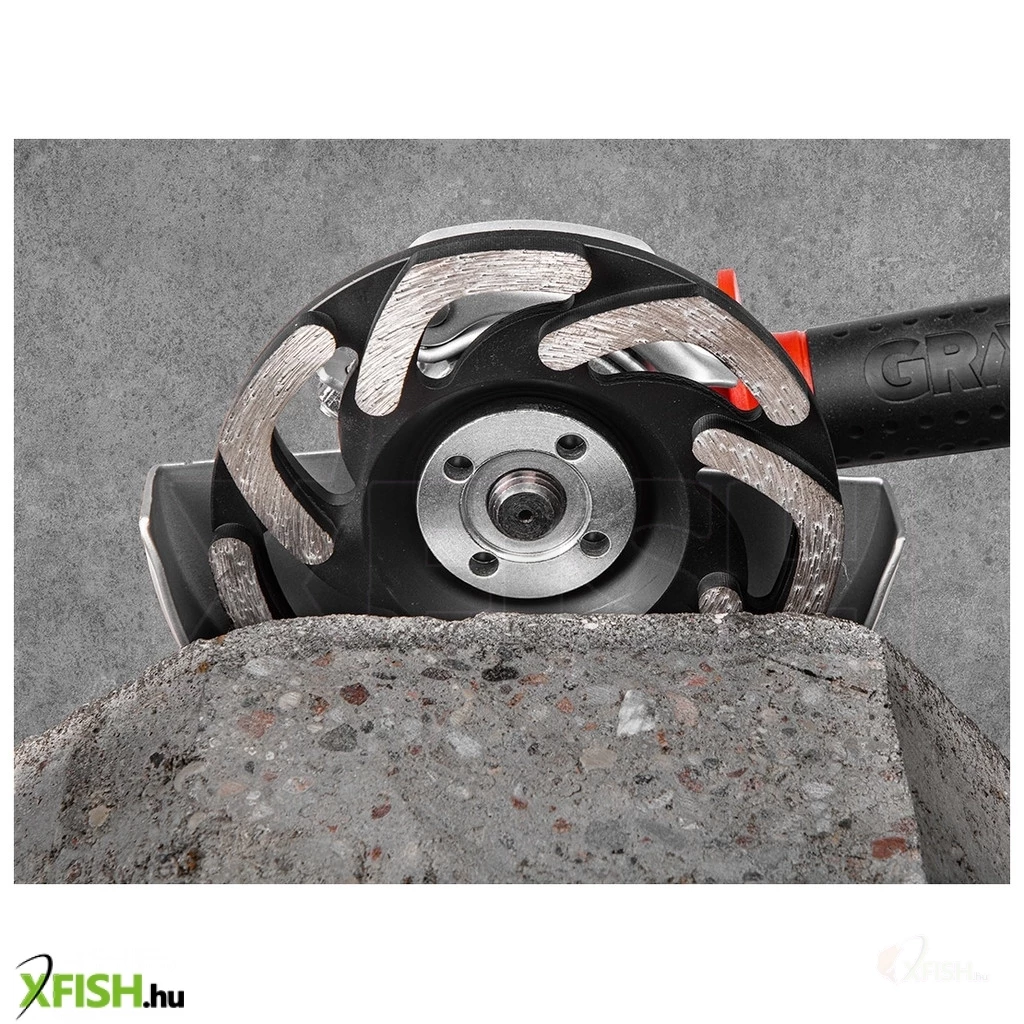 Lemez gyémánt csiszolókorong 115 x 22,2 x 5 mm, szegmens L 57H892 GRAPHITE egy szegmentált csiszolókorong, amely tartós és ellenálló anyagok. Jellemzője a gyémántpenge. A következőkre tervezték kemény és törékeny anyagok vágása (különösen beton vagy kő). Csempe, kőedény, gránit és márvány is kezelhető vele. márvány. Mivel a gyémántszegmens forró préselésű melegen sajtolt, ami növeli a tartósságát. L-szegmens kialakítás - A derékszögben beállított csiszolóelemek a a tárcsa fokozatosan felveszi az anyagot és kisimítja a felületet egy ellenőrzöttebb. Ily módon pontosabb és pontosabb pontosabb eredmények. A GRAPHITE márka célja szakemberek.