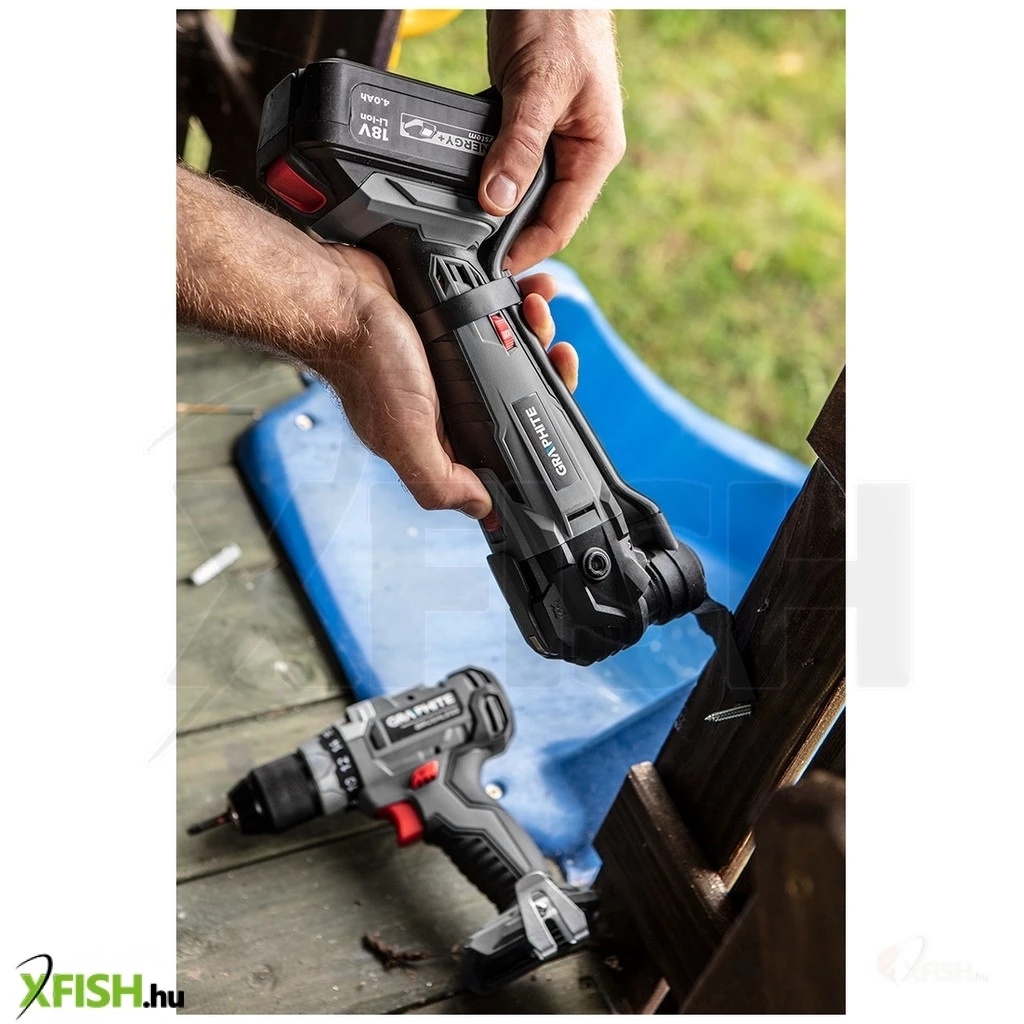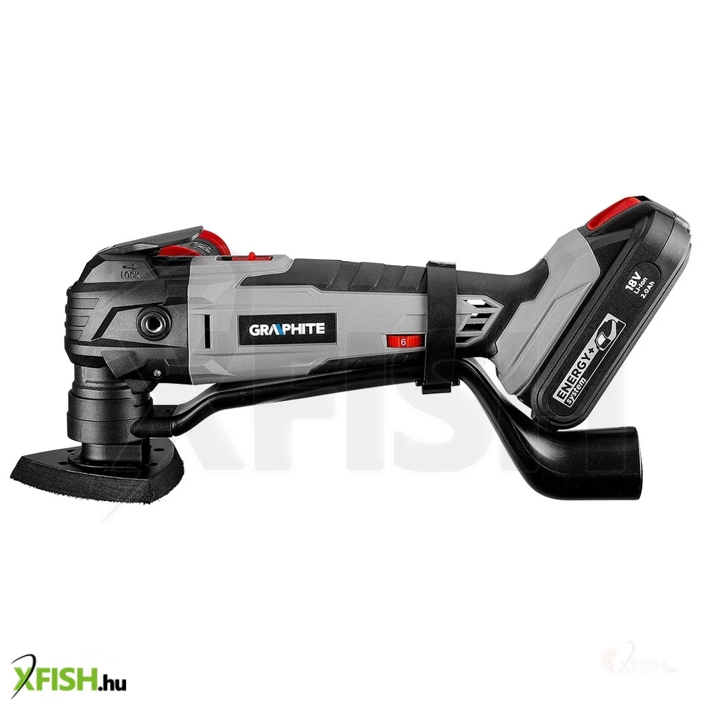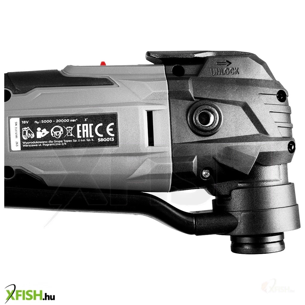 Akkus multifunkciós berendezés 18V, Li-Ion, oszcillációs szám 5000 - 20000 minOO, oszcillációs szög 3°, talp 80x80x80 mm, (LxH) 300 x 140 mm, tömege 1.8 kg, tartozék: szerszámfej - 2 db, csiszolópapír - 1 db, kompatibilis az Energy+ akkumulátorokkal