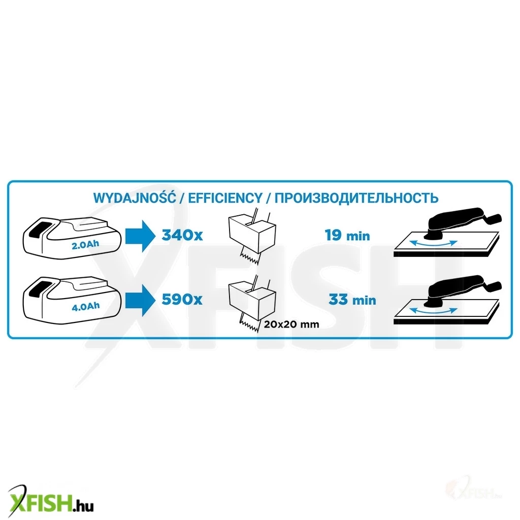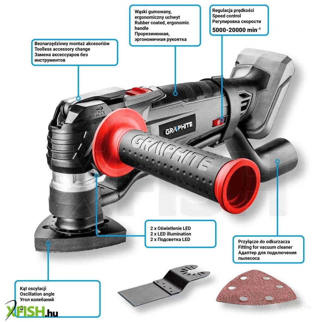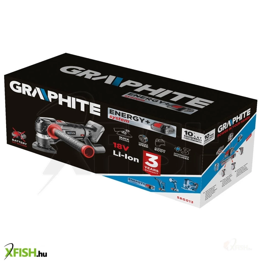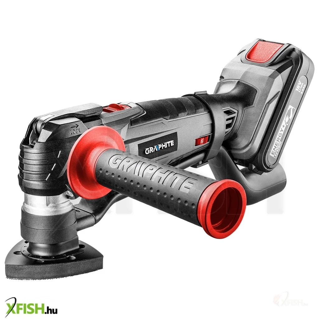 Akkus multifunkciós berendezés 18V, Li-Ion, oszcillációs szám 5000 - 20000 minOO, oszcillációs szög 3°, talp 80x80x80 mm, (LxH) 300 x 140 mm, tömege 1.8 kg, tartozék: szerszámfej - 2 db, csiszolópapír - 1 db, kompatibilis az Energy+ akkumulátorokkal