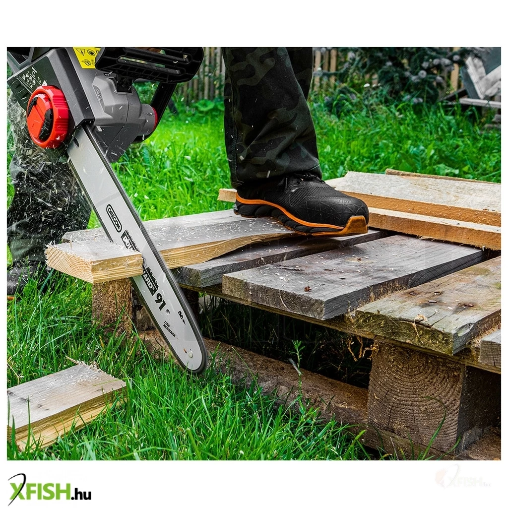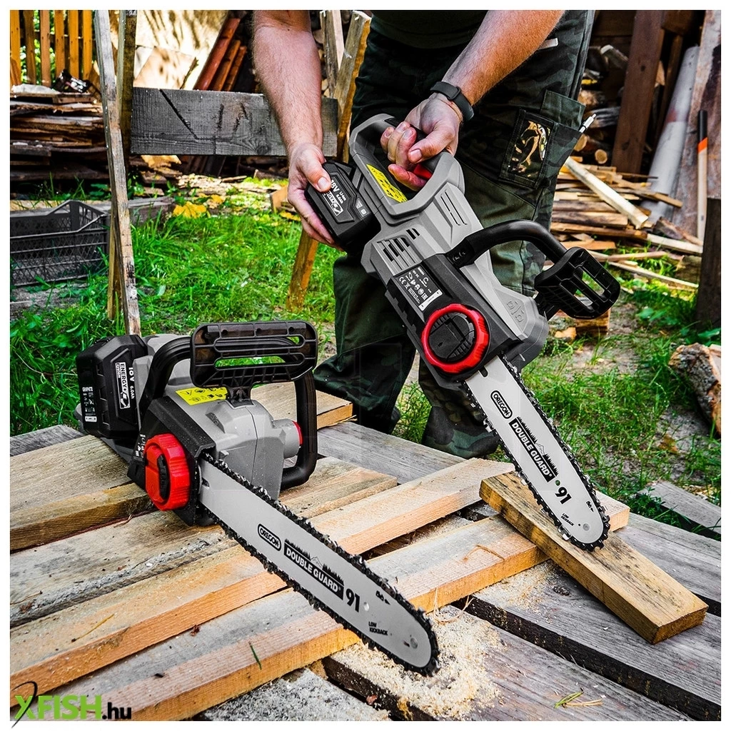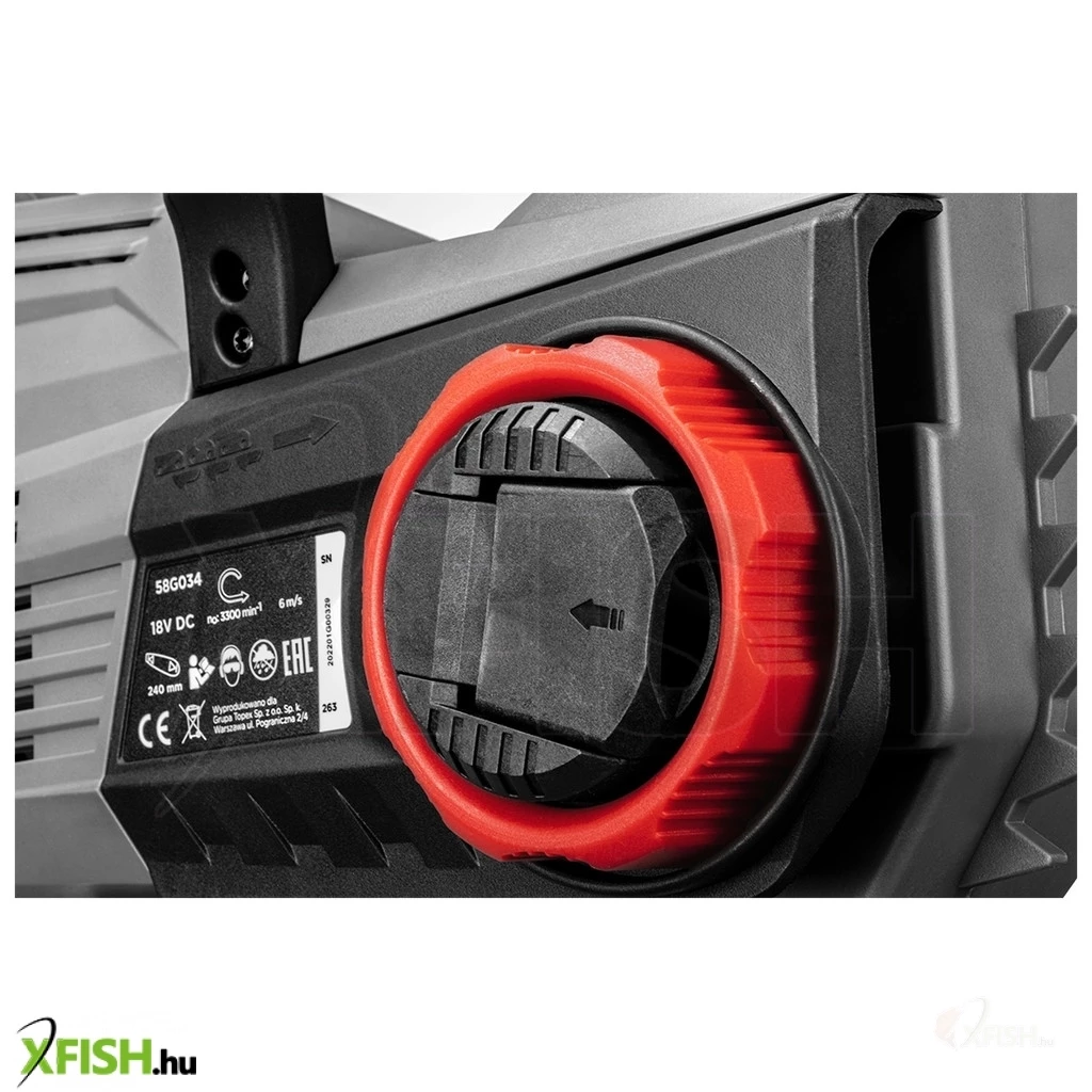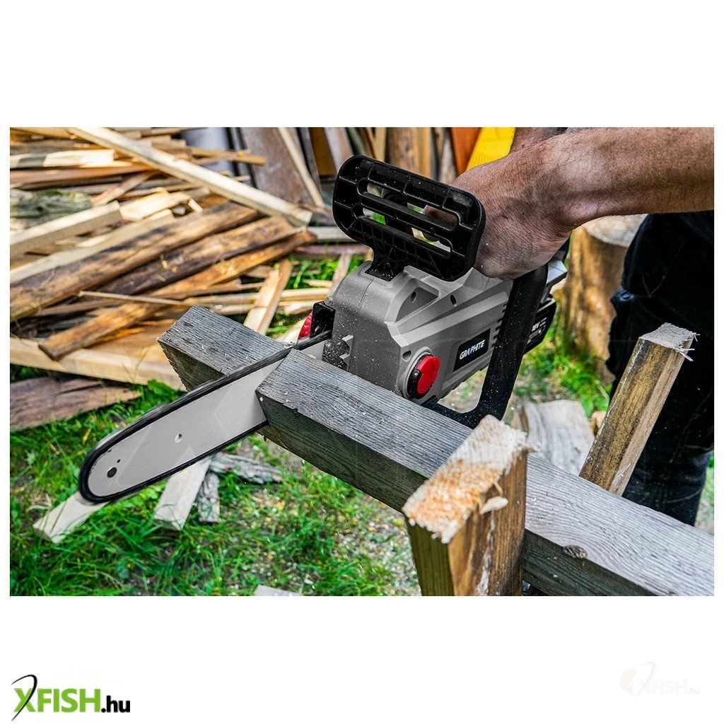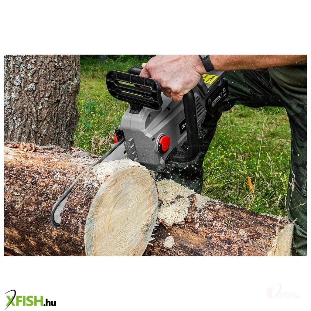 Akkus láncfűrész, 58G034, GRAPHITE - kiváló minőségű szerszám, amely két 18 V-os akkumulátorral működik. A fűrészt tűzifa és faágak vágására tervezték. A berendezést automatikus olajadagoló szerkezettel szerelték fel, amely minimalizálja a fűrész nem megfelelő használatából eredő meghibásodás kockázatát. A kényelmet és biztonságot szem előtt tartva a terméket szerszám nélküli láncfeszítő rendszerrel, kényelmes fogantyúval és a kezek védelmét szolgáló külső pajzzsal látták el.