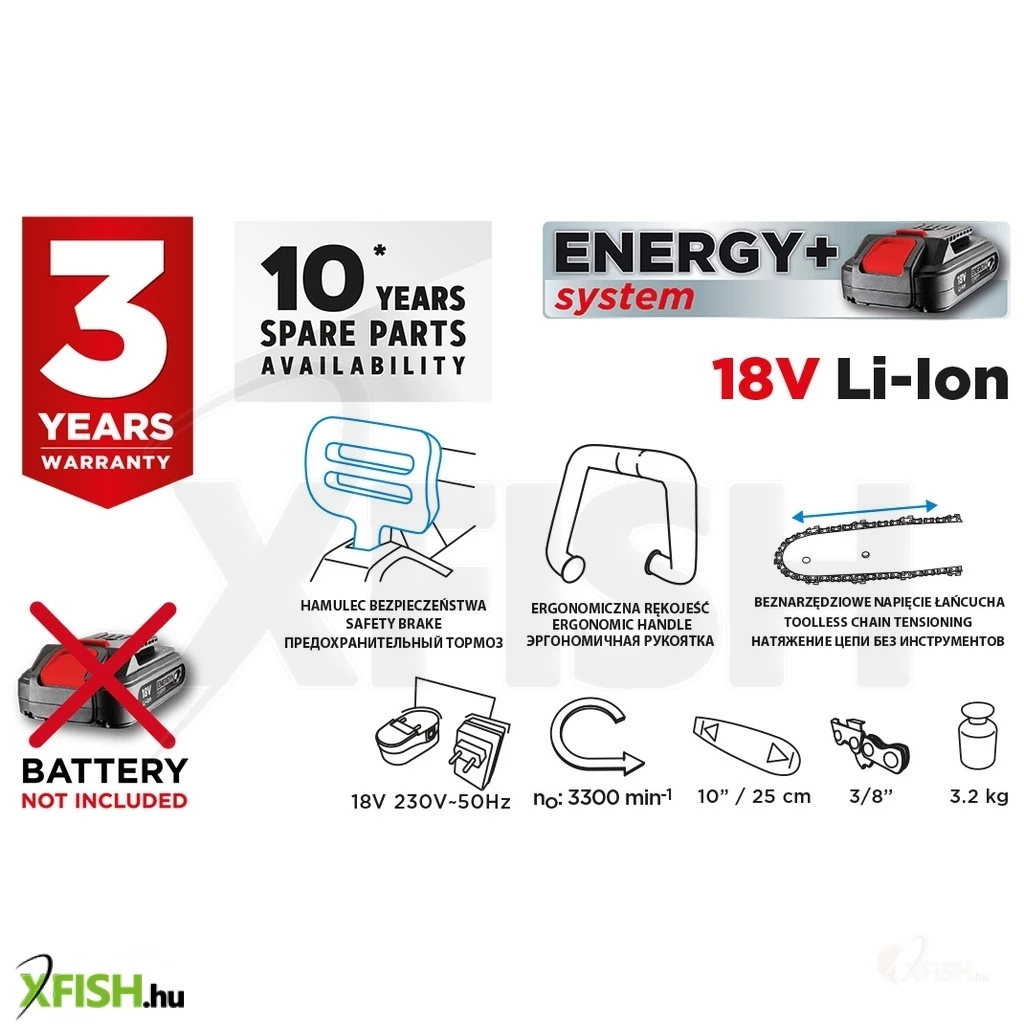 Neotools akkus láncfűrész energy+ 18v li-ion, 10(250mm) láncvezető, akku nélkül!!!