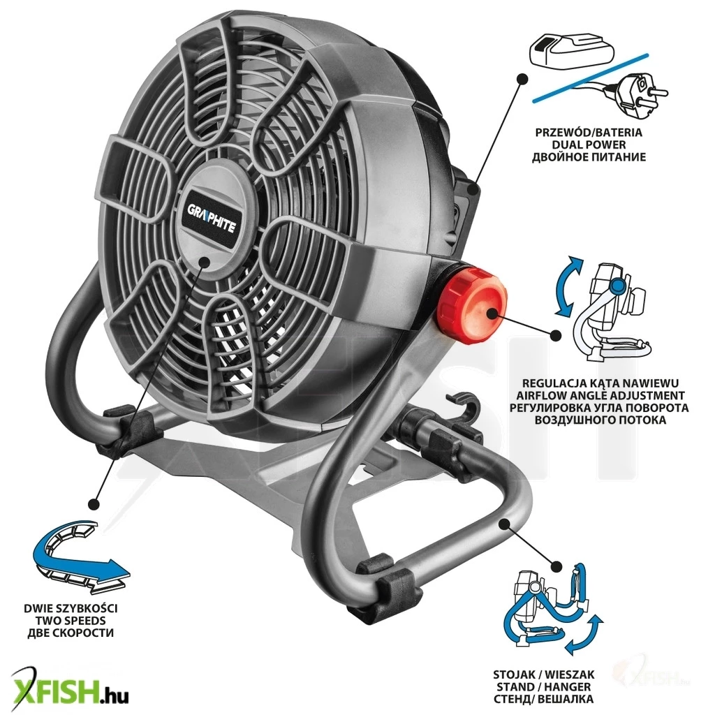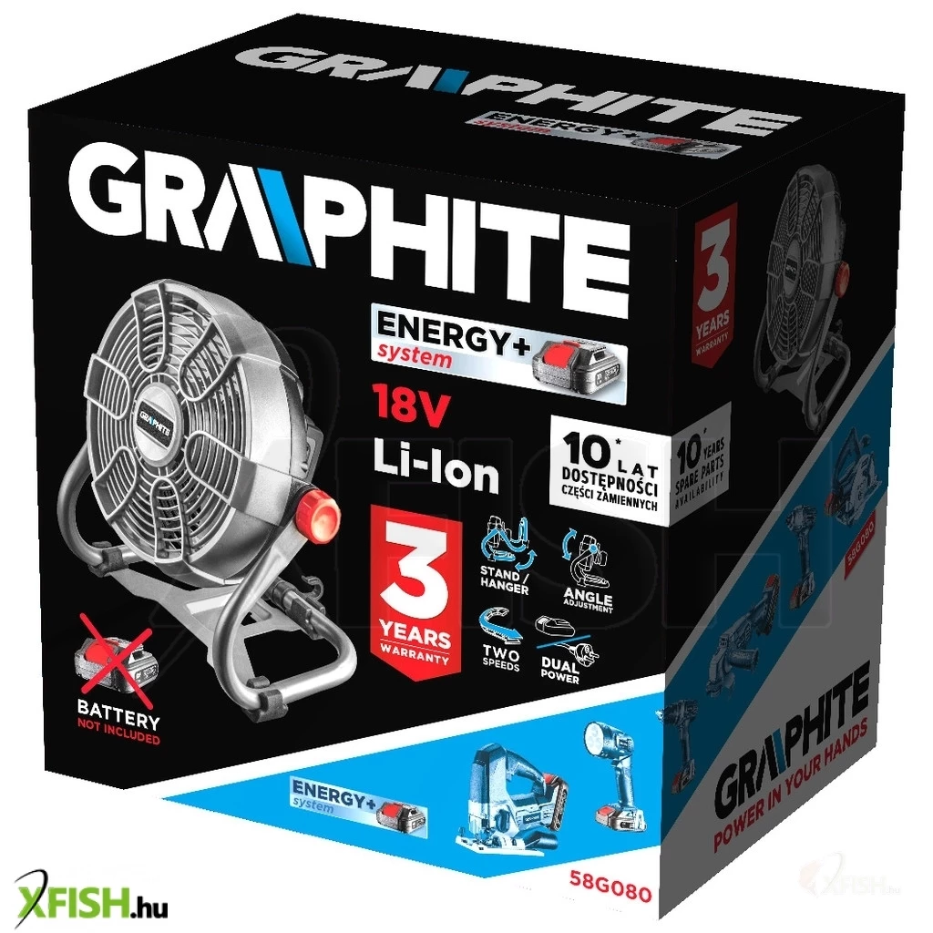 Akkus és vezetékes ventilátor, Energy+ 18 V, 58G080, GRAPHITE