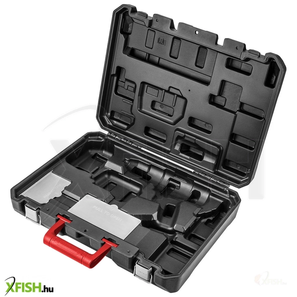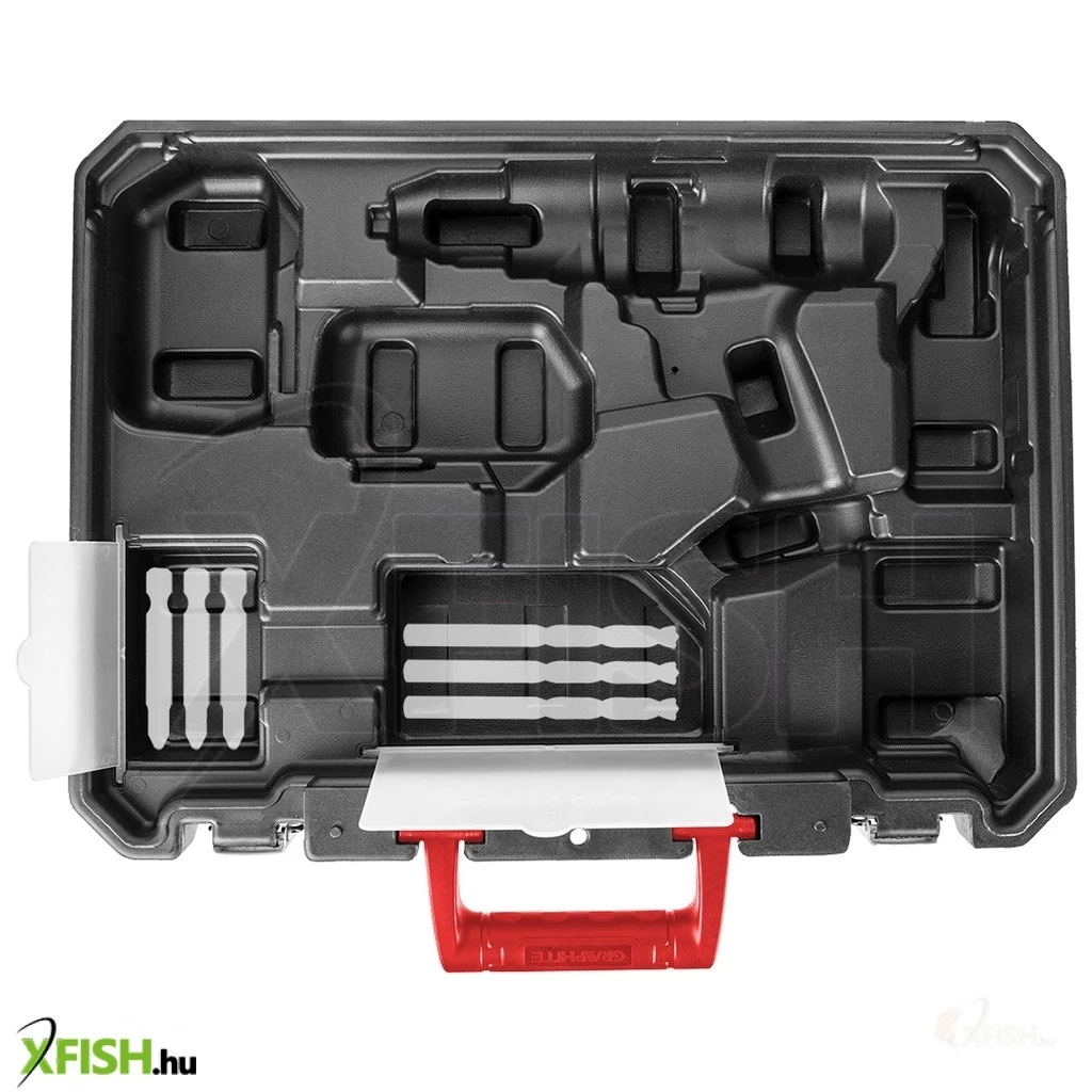 A kofferben kialakított helye van: a fúró-csavarozónak, töltőnek, 2 akkumulátornak, tartozékdoboznak