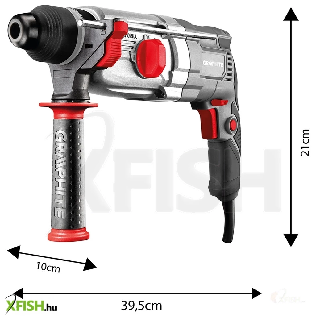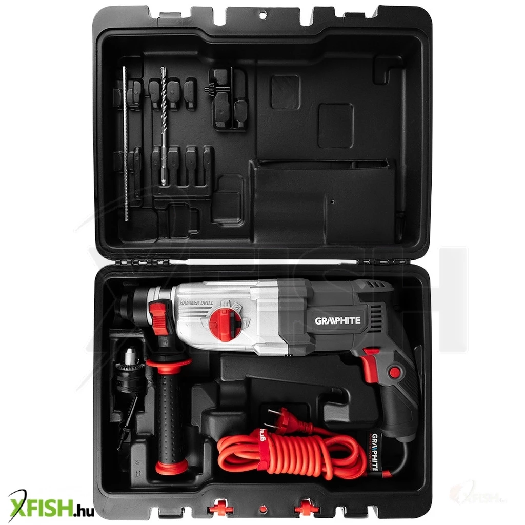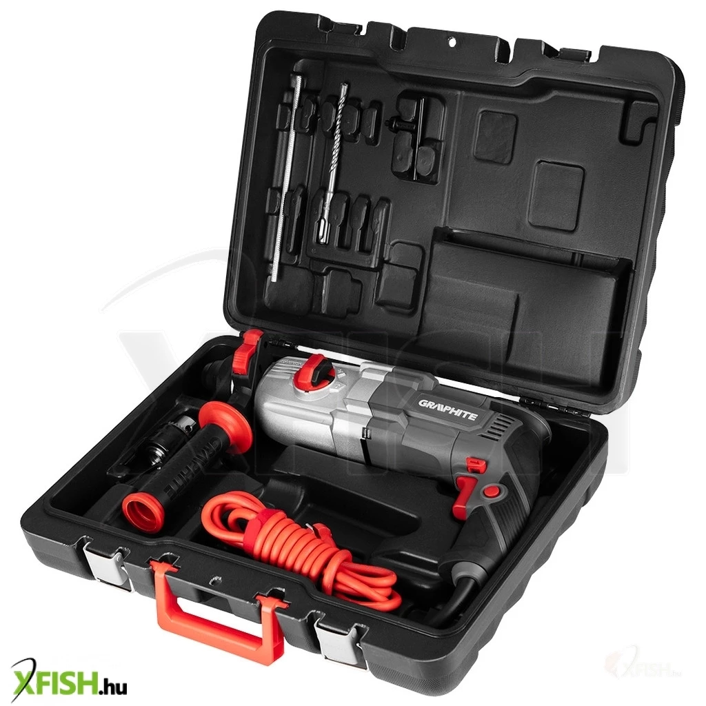 Az SDS+ 900 W, 3,4J, tok 58G539 kalapácsfúró a GRAPHITE-tól egy 900 W-os speciális SDS+ szerszám fúró és ütő funkcióval. Akár 28 mm átmérőjű lyukakat is fúrhat betonba és téglába, 13 mm átmérőjűeket acélba és 30 mm átmérőjűeket fába. A szerszám rendelkezik orsófordítóval, fokozatmentes fordulatszám-szabályozással és be-/kikapcsoló reteszeléssel a folyamatos működéshez. Fúrás közben a fúrókalapács akár 950 fordulat/perc fordulatszámot is elérhet, ütőfúrásra kapcsolva pedig akár 5300 löket/perc (az ütőfúró funkció akkor aktiválódik, amikor a fúrófejet a fúrt felülethez nyomják). A szerszám ütési energiája 3,4 J. A kényelmes "kattintás" funkció a fúrófej gyors rögzítésére szolgál. A szerszám kényelmes fő fogantyúja csúszásmentes markolattal borított, így jól fekszik a kézben. A készlet a következőket tartalmazza: további fúrófejek, fúrótokmány, tokmányadapter, fúrási mélységmegállító rúd, forgatható segédfogantyú, kenőanyagtartály és hordtáska. A készülék rugalmas és tartós, 3 m hosszú, gumibevonatú tápkábellel van ellátva, amely szintén professzionális és ipari alkalmazásokhoz készült, beltéri és kültéri használatra egyaránt. Az európai szabványoknak való megfelelést a CE tanúsítás biztosítja.