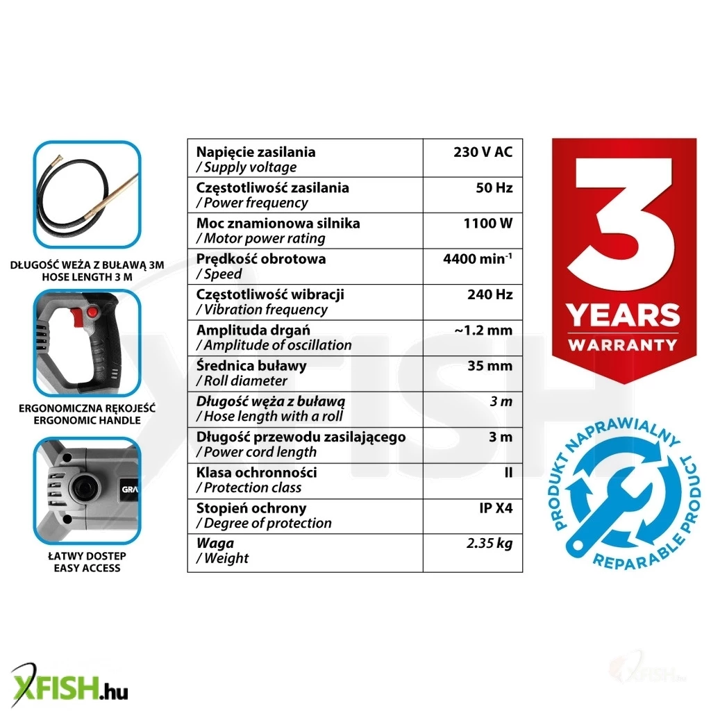 KategóriákKategóriákBarkácsolás, építkezés Speciális barkácsgépek Neotools betonvibrátor, 1100w, 4400/perc, 3m-es kábellel