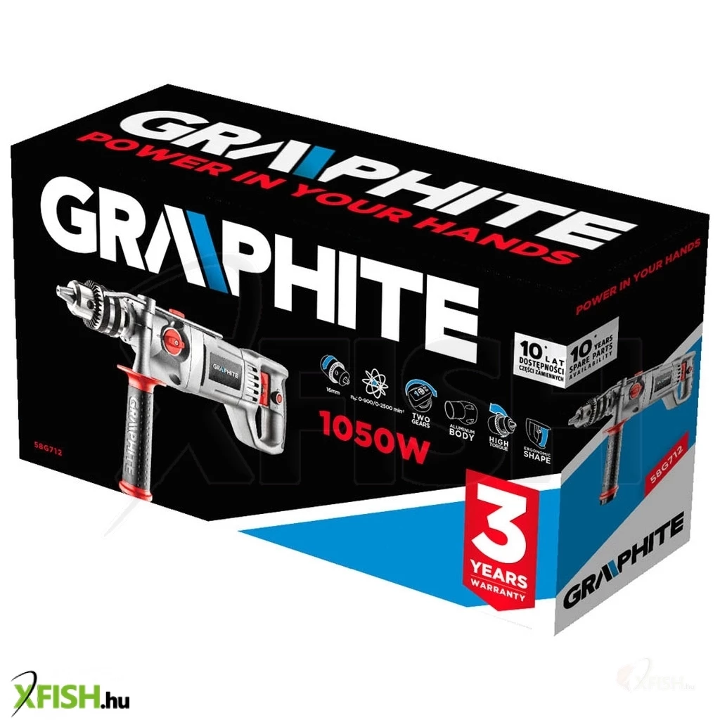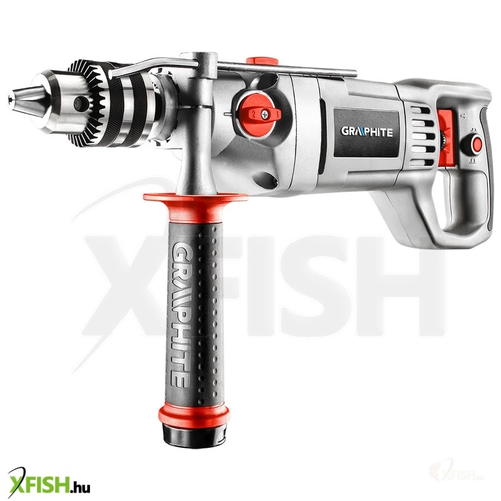 Ütvefúró 1050 W, kétsebességes, 16 mm-es gyorstokmány, fordulatszám I.: 0-900 min-1, II.: 0-2 500 min-1, ütés I.: 0-14 000 min-1, II.: 0-40 000 min-1, jobb/bal, max. fúrási O fa/beton/acél 40/20/16, orsómenet 1/2" x 20 mm, tömeg 3,5 kg, kartondoboz