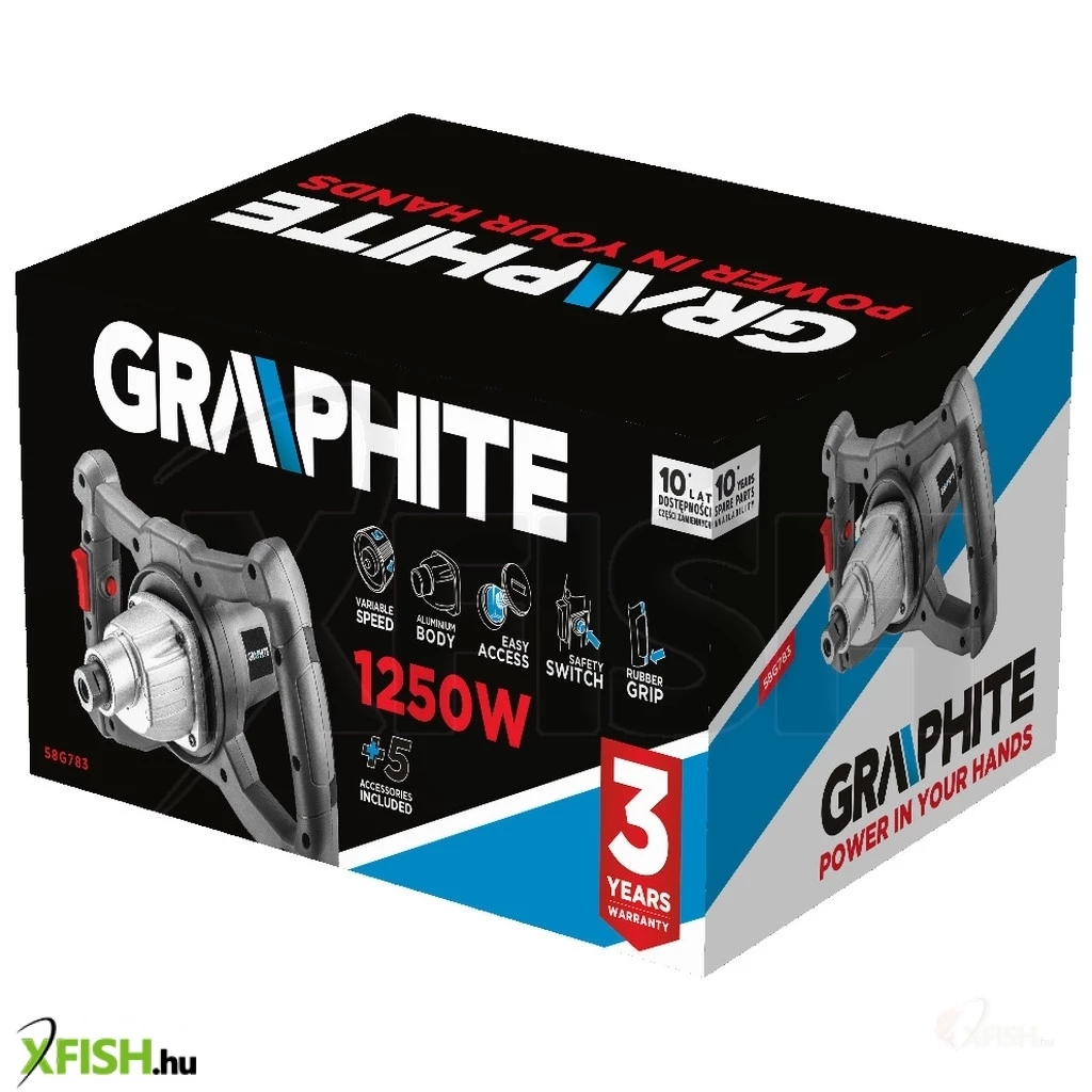Keverőgép 1250W, fordulatszáma 400-800 minOO, befogó M14, tömege 5.6 kg, tartozék: szár - 1 db, keverőlapát - 2 db, kulcs - 2 db