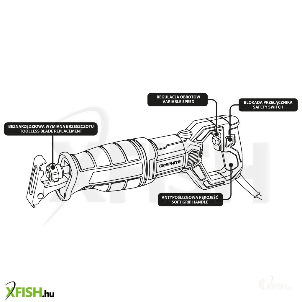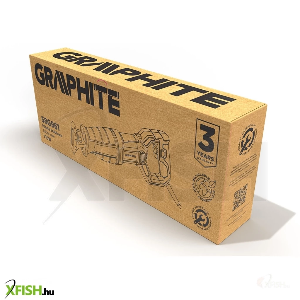 A710 W 58G961 GRAPHITE szablyafűrész egy fa, fém és műanyag vágására tervezett gép. Teljesítménye 710 W, fordulatszáma pedig legfeljebb 2800 fordulat/perc. A pengehossz ennél a készüléknél 20 mm. A maximális vágási kapacitás - anyagtól függően - fában 115 cm, fémben 8 mm.