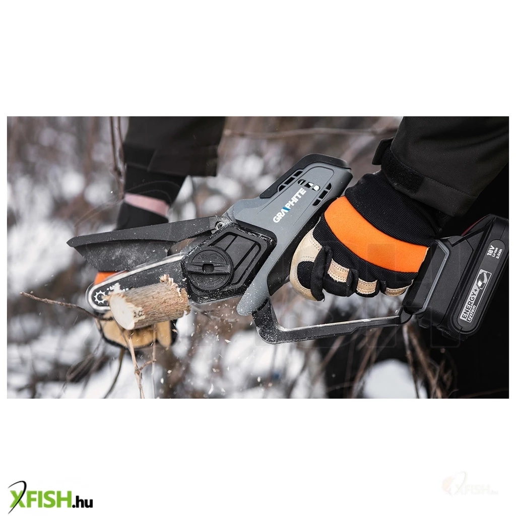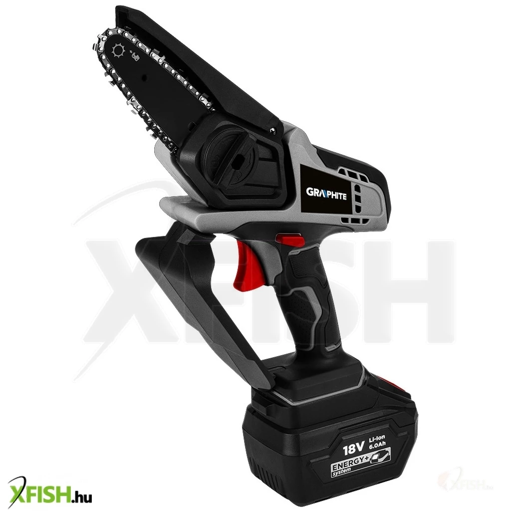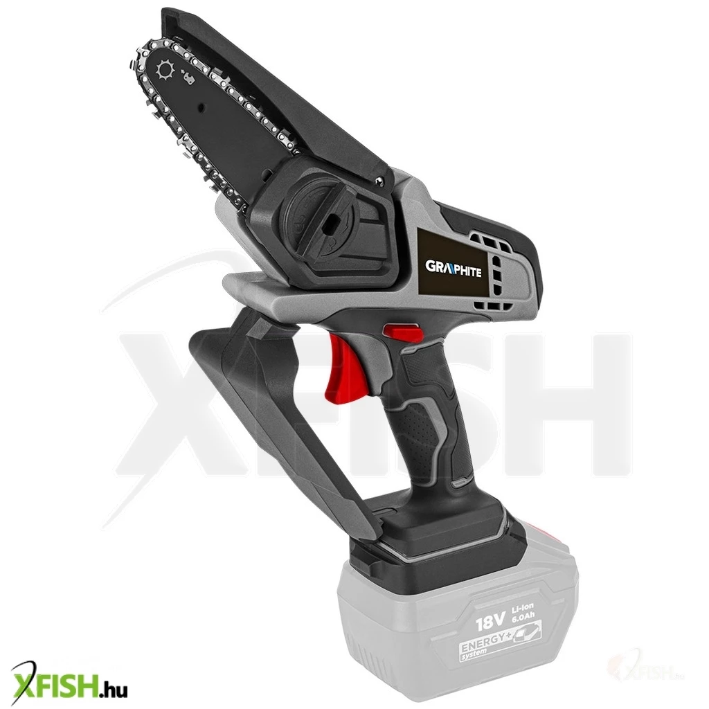 AzEnergy+ 18 voltos 58GE116 GRAPHITE mini akkumulátoros láncfűrészt a GRAPHITE márka legkorszerűbb rendszere hajtja, amely nagy teljesítményű Energy+ akkumulátorokon alapul. A láncfűrész 18 V-os lítium-ion akkumulátorral kompatibilis. A szerszámot a kertben való használatra tervezték, ágak kivágására vagy metszésére, szoros helyen. A mini láncfűrész lineáris láncsebessége (terhelés nélkül) 0 ÷ 4,6 m/s.