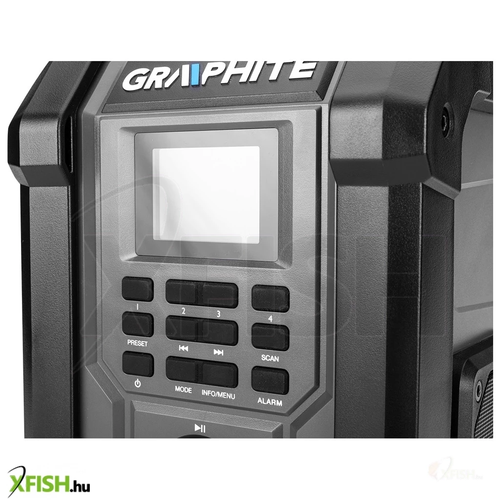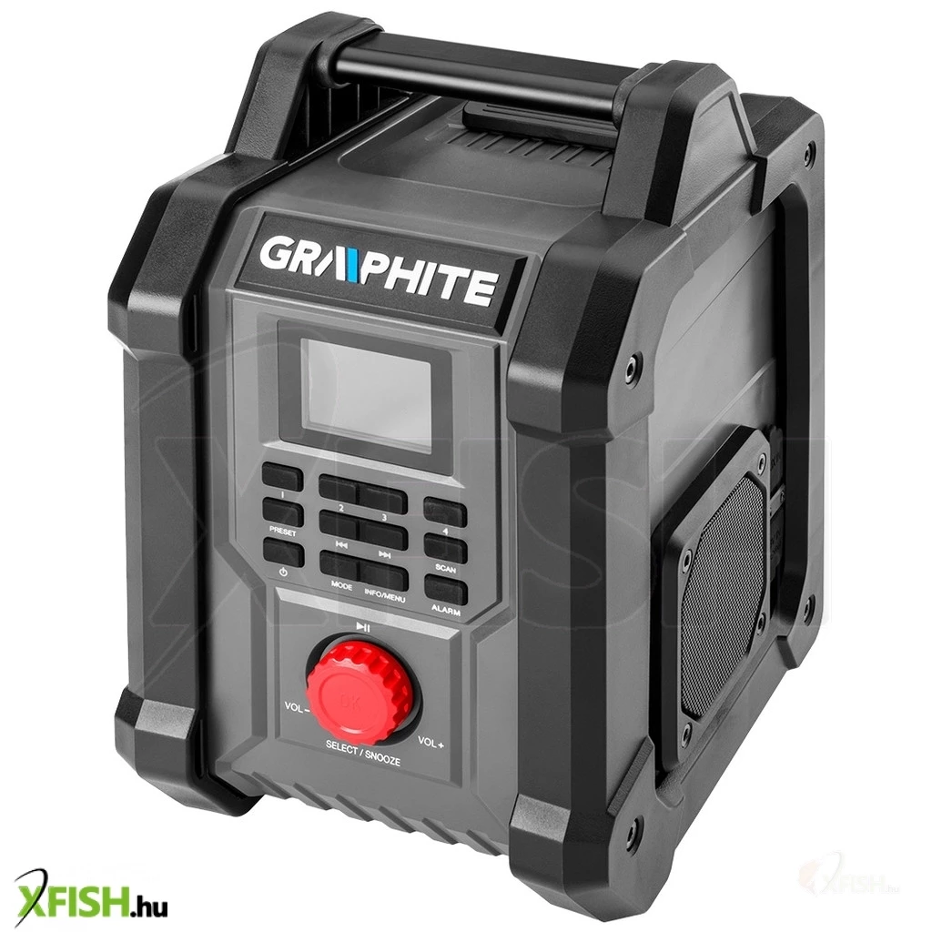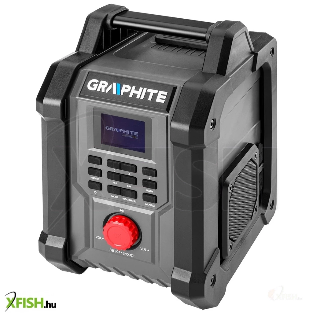 A készülék két, egyenként 15 watt teljesítményű hangszóróval, valamint egy praktikus, 2,4"-os színes képernyővel rendelkezik, amelyen például az aktuális frekvencia látható. A rádió lehetővé teszi az FM funkció használatát (30 állomás, 87,5 - 108 mHz tartományban), a DAB (30 állomás, 174 mHz - 240 mHz tartományban), vagy kényelmesen átkapcsolhat bluetooth 5.0 üzemmódra. Emellett rendelkezik alvófunkcióval, ébresztési és óraállítási lehetőséggel, automatikus beállítással. Ez egy rendkívül tartós készülék a GRAPHITE márkától, amely kellemesebbé teszi a munkaidőt.