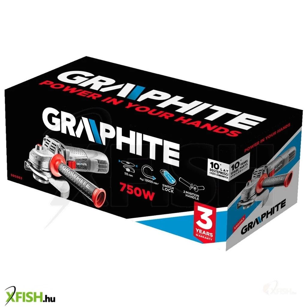 Sarokcsiszoló 750 W, keskeny felépítés, tárcsaméret 115 x 22,2 mm, fordulatszám 12 000 percOO, orsómenet M14, kétfokozatú indítókapcsoló, kétpozíciós oldalmarkolat, indítókapcsoló reteszelő gomb, (HxM) 300 x 137 mm, tömeg 1,9 kg, tartozékok: tárcsa védőborítás, speciális kulcs, pótmarkolat