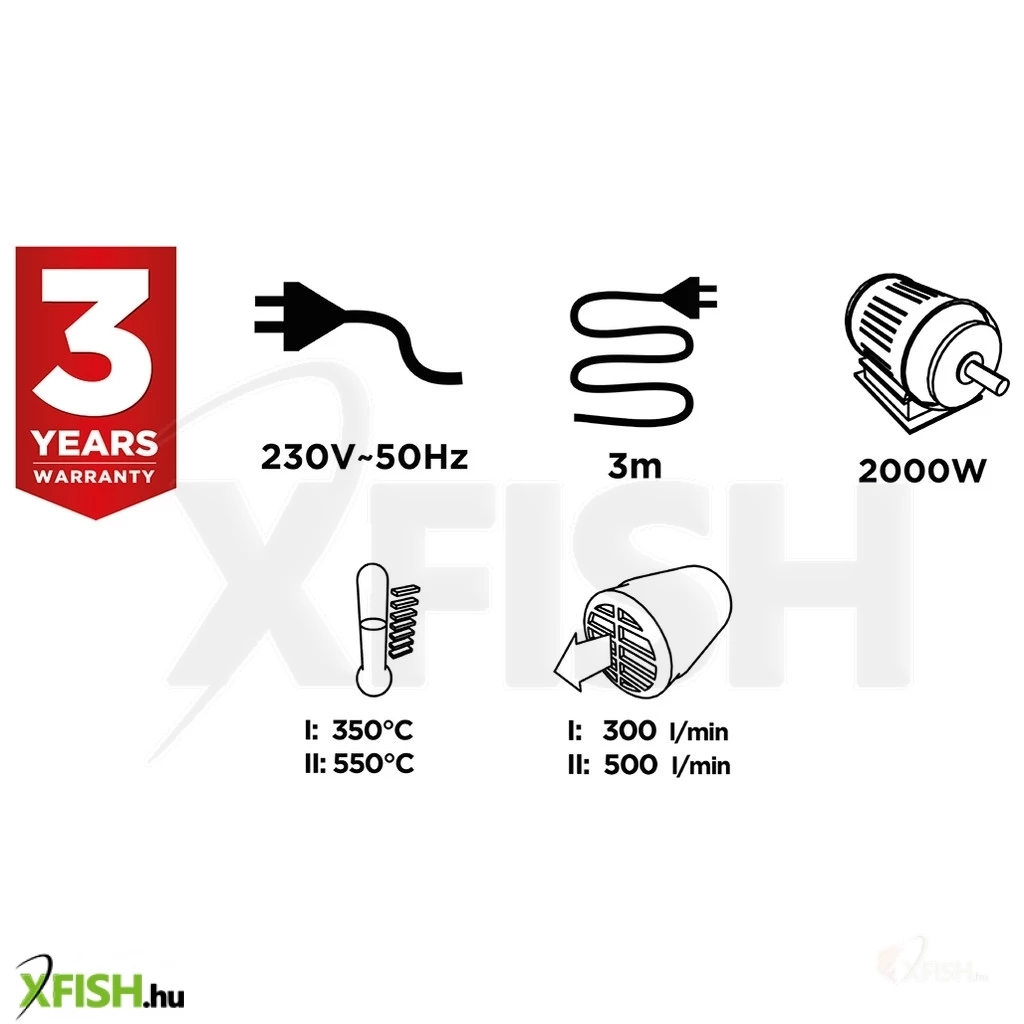 Neotools hőlégfúvó 2000w, egyenes markolat, hőfokszabályzós i 350oc, ii 550oc