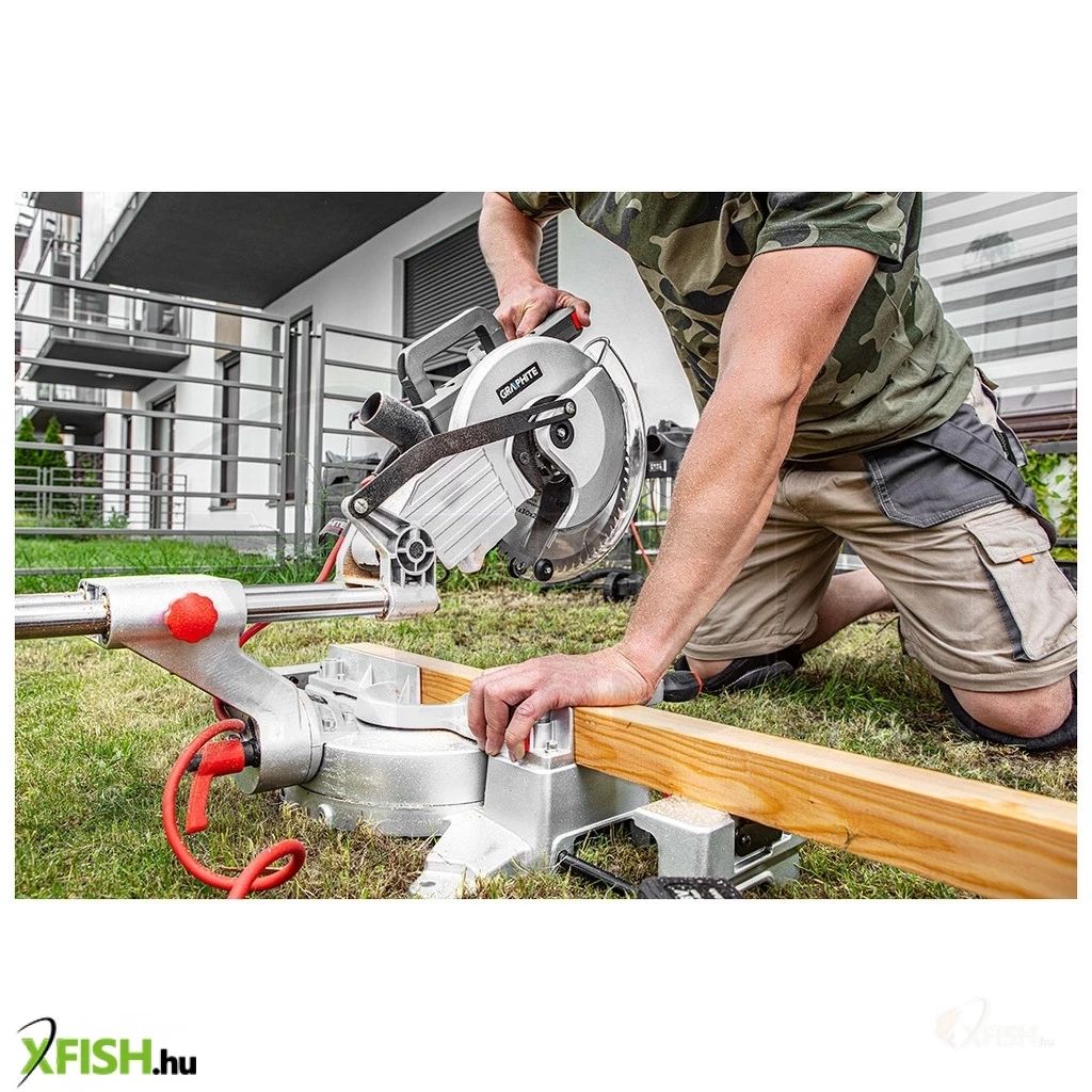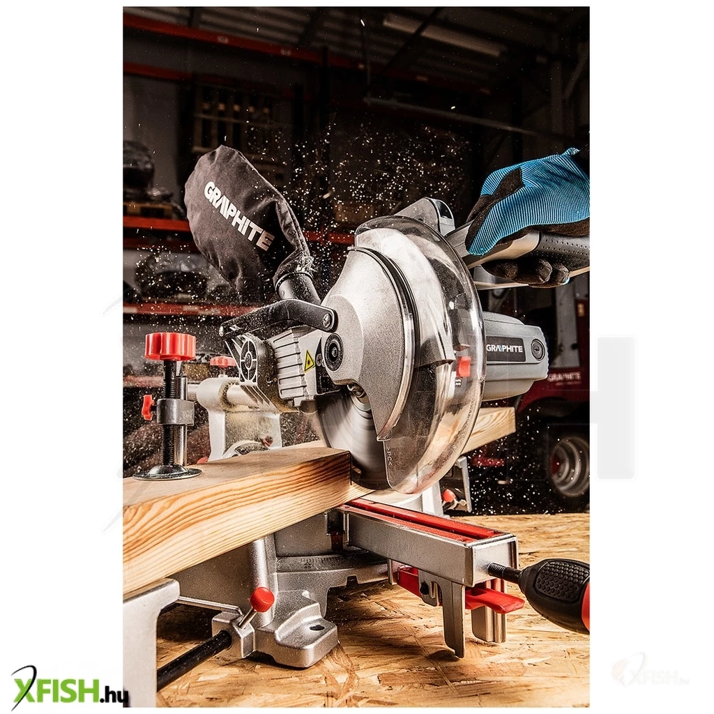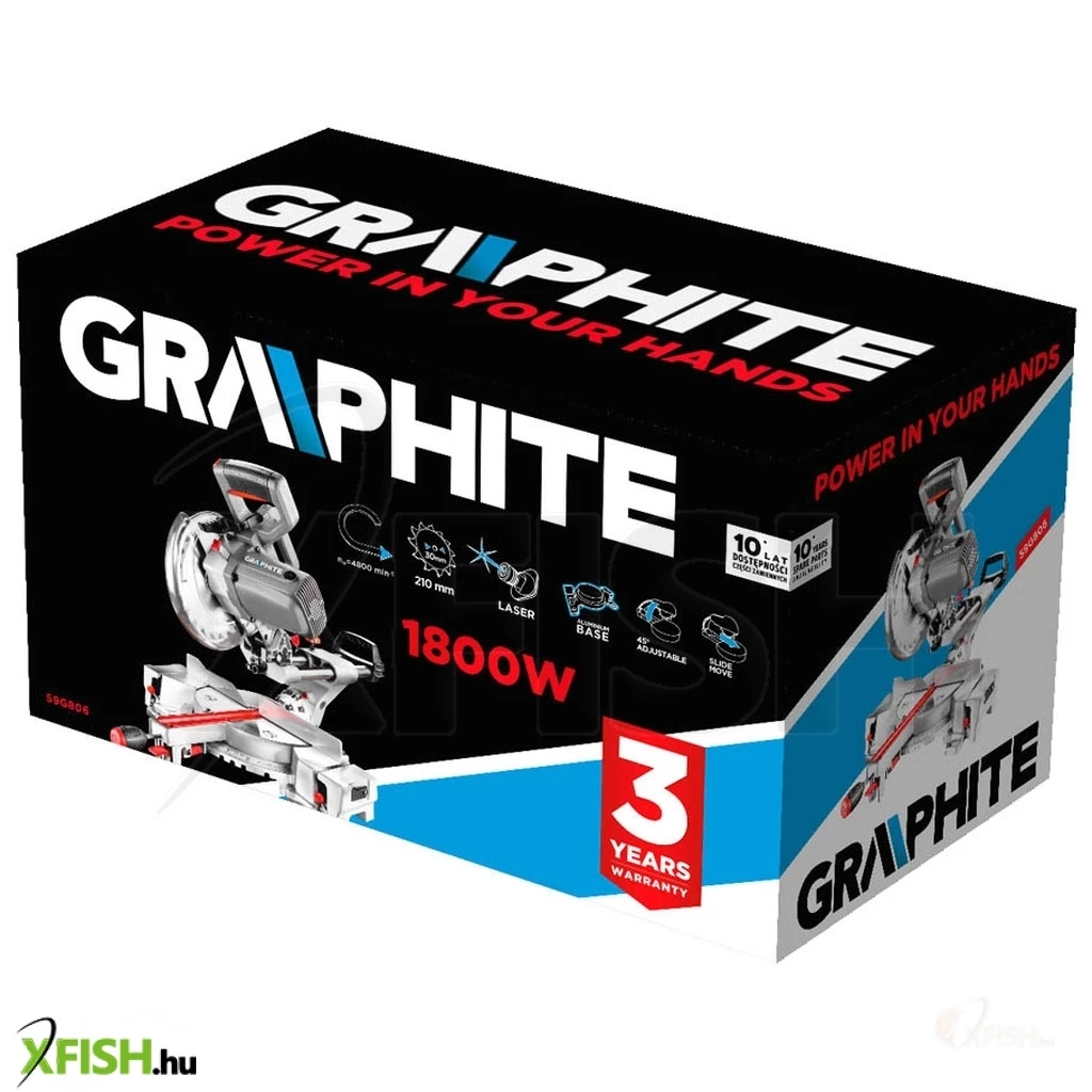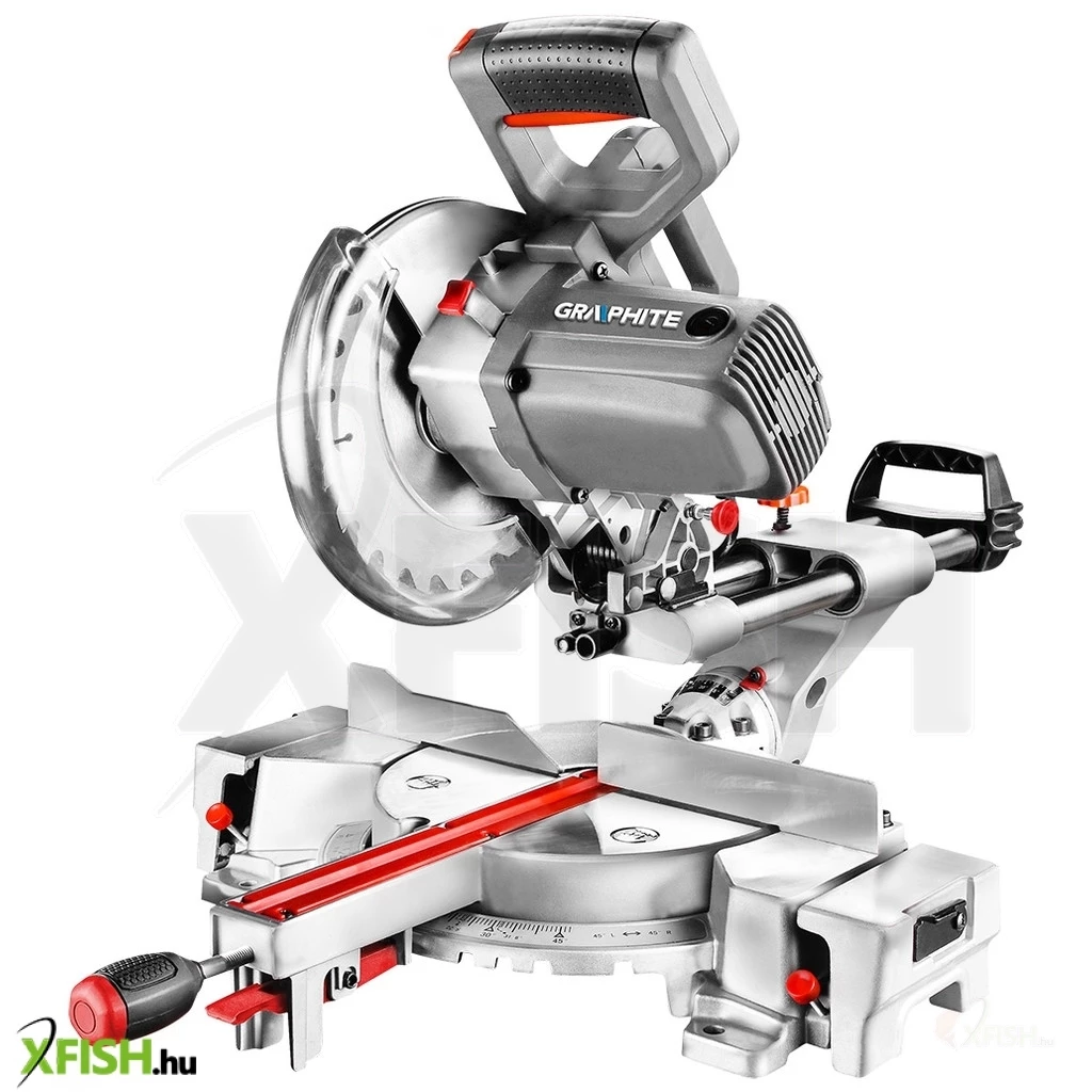 Gérvágó fűrész 1 800 W, fűrésztárcsa 210 x 30 mm, fordulatszám 4 800 perc-1, gérvágási tartomány ±45O, ferdevágási tartomány 0 - 45O, max. vágásmélység 90O/90O: 65-260 mm, vezetőléc hossz. 185 mm, kitűző lézer