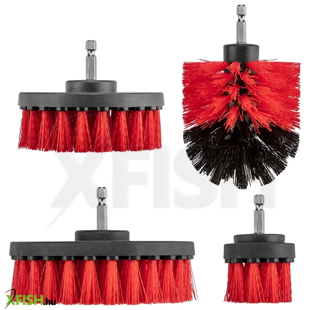 Tisztító kefék fúróhoz vagy fúrógéphez, átmérője 50, 90, 100, 130 mm, hatszögletű fogantyú, közepesen kemény sörték, műanyag ház, 4 db-os készlet