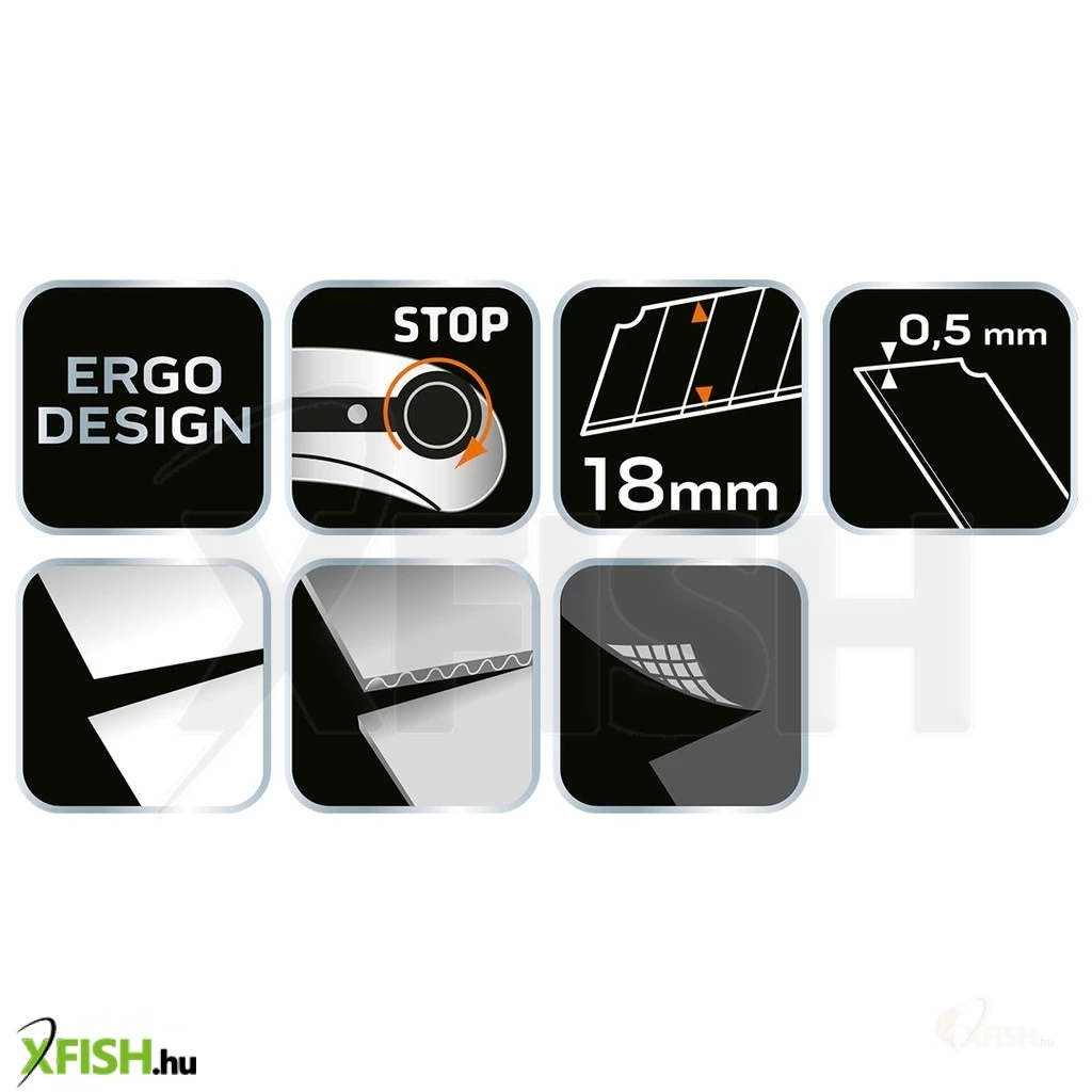 Neotools törhető pengés kés 18mm, fém vezetősín, tekerős